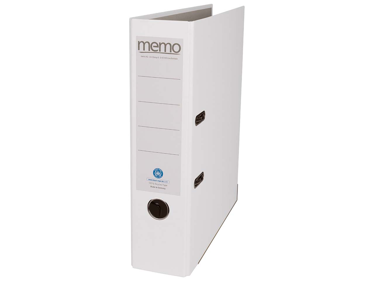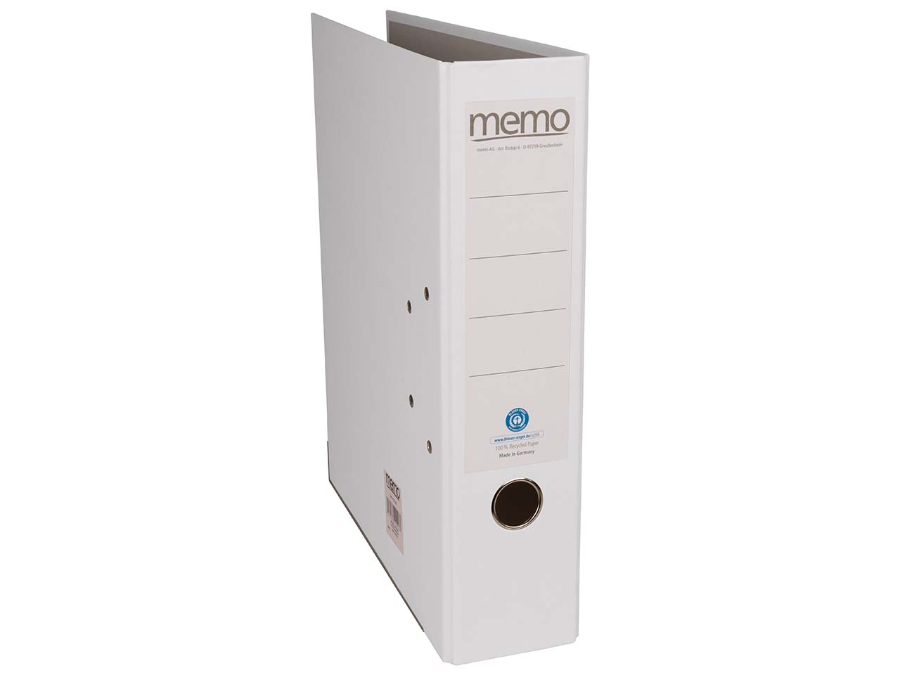 Der memo Ordner ist aus Recyclingpappe gefertigt und für seine Umweltverträglichkeit mit dem Blauen Engel ausgezeichnet.