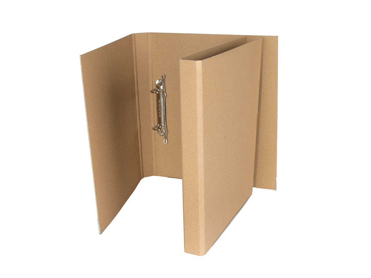 Ringbuch mit 2-Ring-Mechanik. Aus Buchbinderpappe, kaschiert mit naturbraunem Wellpappen-Rohpapier. Ausgezeichnet mit dem Blauen Engel. Für Format DIN A4, Rückenbreite 3 cm.