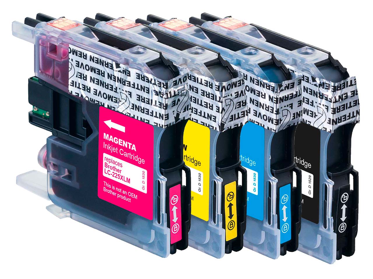 Die memo Tintenpatronen sind die umweltschonende Alternative zu Brother LC-227XLBK und LC-225XLC/M/Y. Sie passen für die Modelle DCP-J4120DW, MFC-J4420DW, J4620DW und J4625DW. Bei 5 % Schwärzung bzw. Deckung reichen die Patronen für jeweils 1.200 Ausdrucke. 1 Set = 4 Stk. in Schwarz, Magenta, Cyan und Gelb.