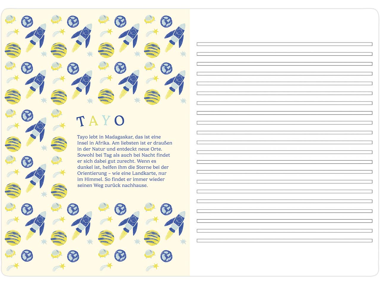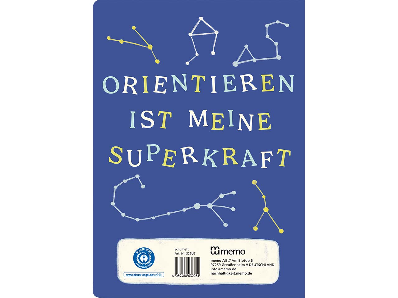 Orientieren – das ist die Superkraft von Tayo. Die Geschichte des Kindes, das in einem der SOS-Kinderdörfer aufgewachsen ist, soll andere Kinder inspirieren, ihre eigene Superkraft zu entdecken. Das Sozialwerk und memo haben sich zusammengetan und eine Reihe von Schulprodukten zusammen entwickelt. Ein Teil der Einnahmen aus dem Verkauf fließt direkt in die Klima-Initiative „Eco Champions“. Das mit dem Blauen Engel ausgezeichnete Schulheft aus Recyclingpapier hat die Lineatur 3 und ist damit ideal für Kinder in der dritten Klasse, die ihren Schreibstil noch perfektionieren. Die Illustrationen stammen von einer jungen Designerin, die diese handgezeichnet hat. Eine kurze, kindgerechte Geschichte erzählt Kindern, wie Tayo seine Superkraft genutzt hat.