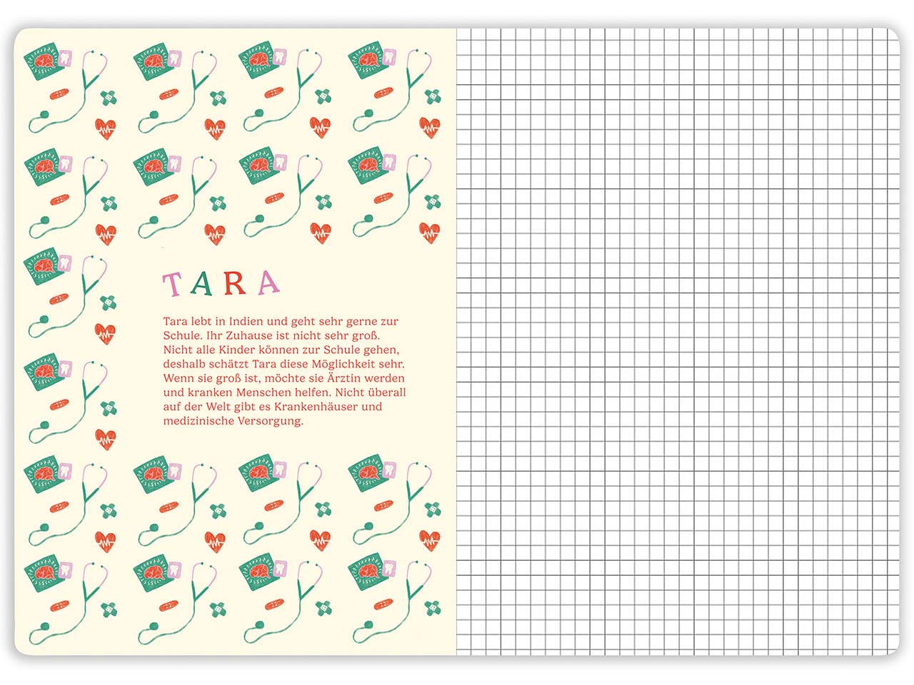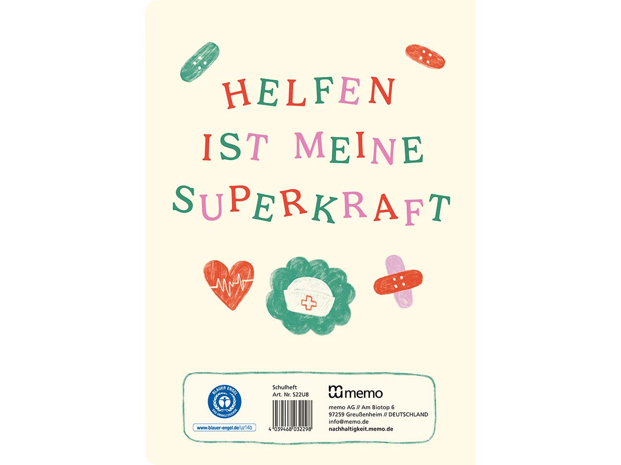 Helfen – das ist die Superkraft von Tara. Die Geschichte des Kindes, das in einem der SOS-Kinderdörfer aufgewachsen ist, soll andere Kinder inspirieren, ihre eigene Superkraft zu entdecken. Das Sozialwerk und memo haben sich zusammengetan und eine Reihe von Schulprodukten zusammen entwickelt. Ein Teil der Einnahmen aus dem Verkauf fließt direkt in die Klima-Initiative „Eco Champions“. Das mit dem Blauen Engel ausgezeichnete Schulheft aus Recyclingpapier hat die Lineatur 7 und hat extra große Kästchen mit 7 x 7 mm, um die Schreibentwicklung zu unterstützen. Die Illustrationen stammen von einer jungen Designerin, die diese handgezeichnet hat. Eine kurze, kindgerechte Geschichte erzählt Kindern, wie Tara ihre Superkraft genutzt hat.