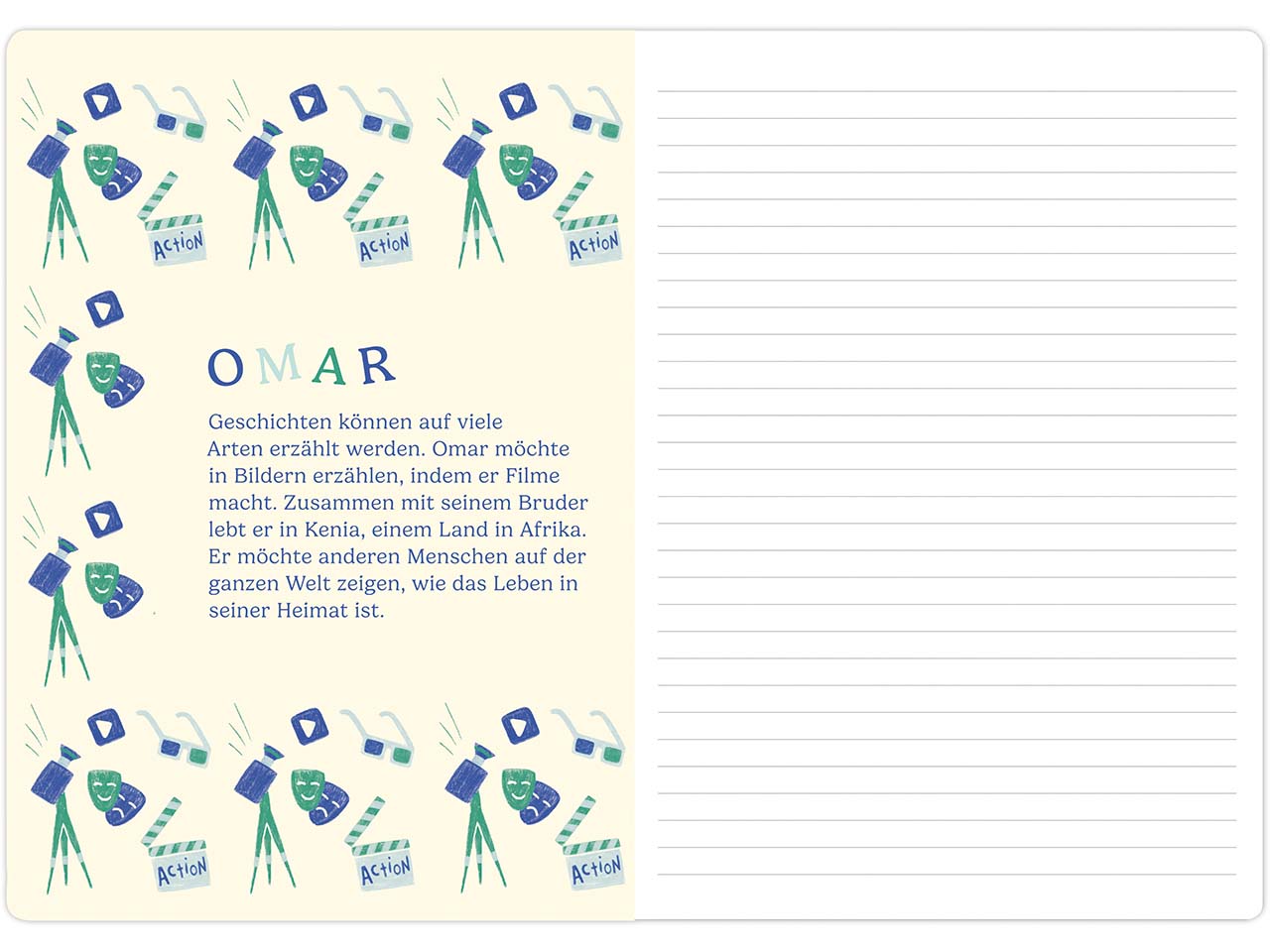 Erzählen als Superkraft! Das gilt für Omar, der seine Geschichten am liebsten in Bildern erzählt. Auf jedem Heft, das in Kooperation zwischen memo x SOS-Kinderdörfer weltweit entstanden ist, befindet sich die Superkraft eines Kindes, das diese für den späteren Lebensweg genutzt hat. Ein Teil der Einnahmen aus dem Verkauf fließt direkt in die Klima-Initiative „Eco Champions“. Kindern Hoffnung zu geben, ihnen Bildung zu ermöglichen und eine bessere Zukunft für sie zu schaffen, gehört zu den Zielen der Kinderrechtsorganisation SOS-Kinderdörfer weltweit. Das mit dem Blauen Engel ausgezeichnete Recycling-Schulheft hat die Lineatur 4, ist randlos und liniert. Es eignen sich, um das Schriftbild weiter zu festigen. Die hübschen Illustrationen stammen von einer jungen Designerin, die diese handgezeichnet hat. Die kurze, kindgerechte Erzählung soll Kinder inspirieren, ihre eigene Superkraft zu entdecken.