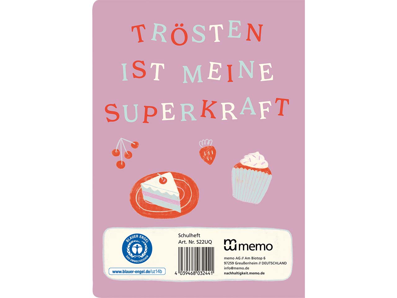 Jedes Kind trägt eine Superkraft in sich und Hoffnung im Herzen! Auf dem Recycling-Schulheft wird genau diese Stärke sichtbar. In diesem Fall: Trösten, die besondere Fähigkeit von Lorena. Die Geschichten stammen von Kindern, die in SOS-Kinderdörfern weltweit aufgewachsen sind. Ihre ganz persönliche Superkraft hat ihnen geholfen, ihren Lebensweg zu gestalten – ob als Beruf, Hobby oder Herzensprojekt. Das mit dem Blauen Engel ausgezeichnete DIN-A5-Heft ist Teil einer Zusammenarbeit zwischen memo und SOS-Kinderdörfer weltweit, die sich gemeinsam dafür einsetzen, Kindern Mut zu machen, ihre Potenziale zu entfalten und ihnen Zugang zu Bildung sowie einer besseren Zukunft zu ermöglichen. Ein Teil der Verkaufserlöse unterstützt zudem die Initiative „Eco Champions“. Das Heft hat eine kindgerechte Gestaltung: Die liebevollen, handgezeichneten Illustrationen stammen von einer jungen Designerin. Ergänzt wird das Heft durch eine kurze Geschichte, die Kinder dazu anregt, über ihre eigenen Stärken nachzudenken. Das blanko Heft Lineatur 6 ist ideal für Zeichnungen im Unterricht.