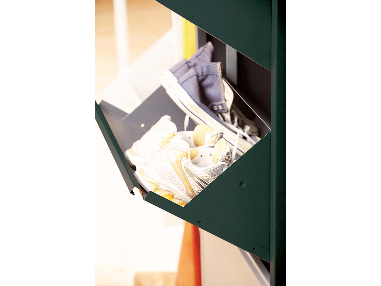 Der Metall-Schuhschrank "Big One Shoe 4" ist aus gepulvertem, langlebigem Stahl hergestellt. Pulverlacke sind frei von Lösemitteln.