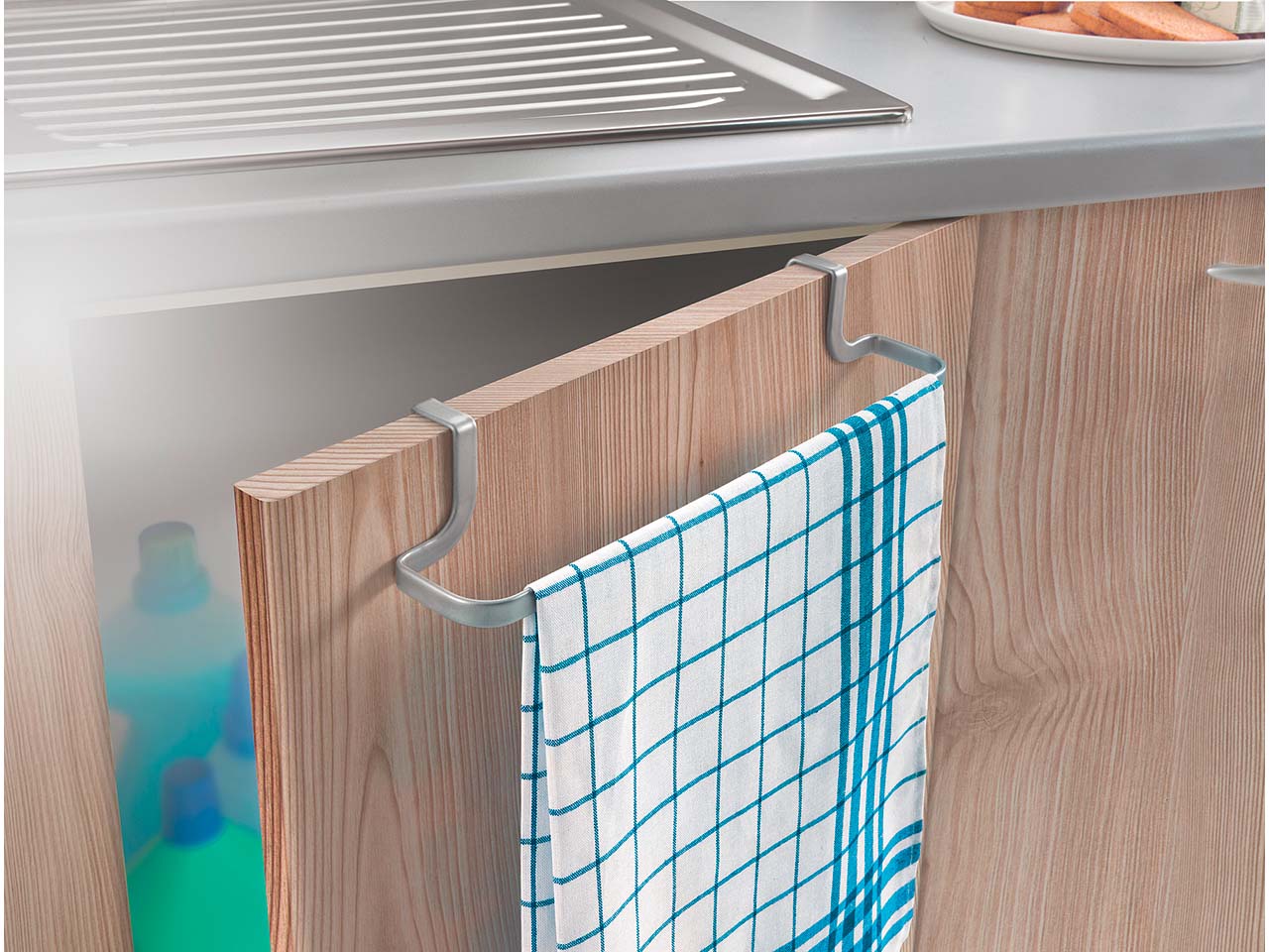 - Wird einfach an Schränken oder Türen eingehängt