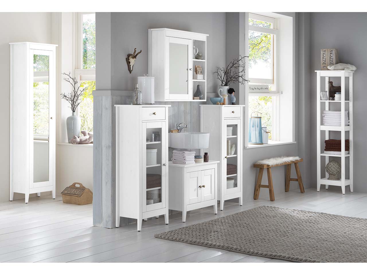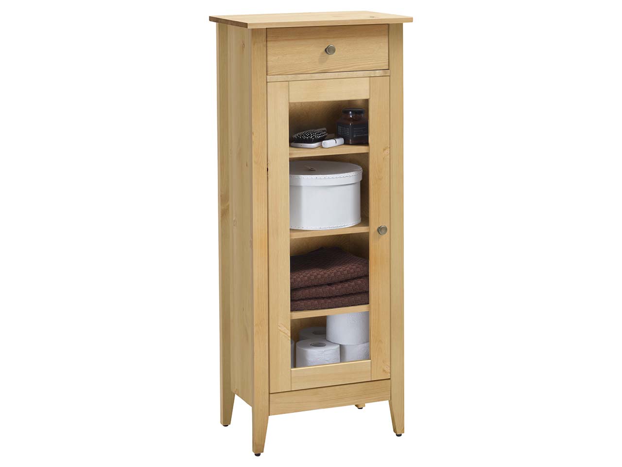 Der Badezimmer-Midischrank wird in Europa hergestellt und besteht aus massivem Kiefernholz, welches aus europäischer Forstwirtschaft stammt. Die Oberfläche ist gebeizt und mit Öl auf Pflanzenbasis geölt.
