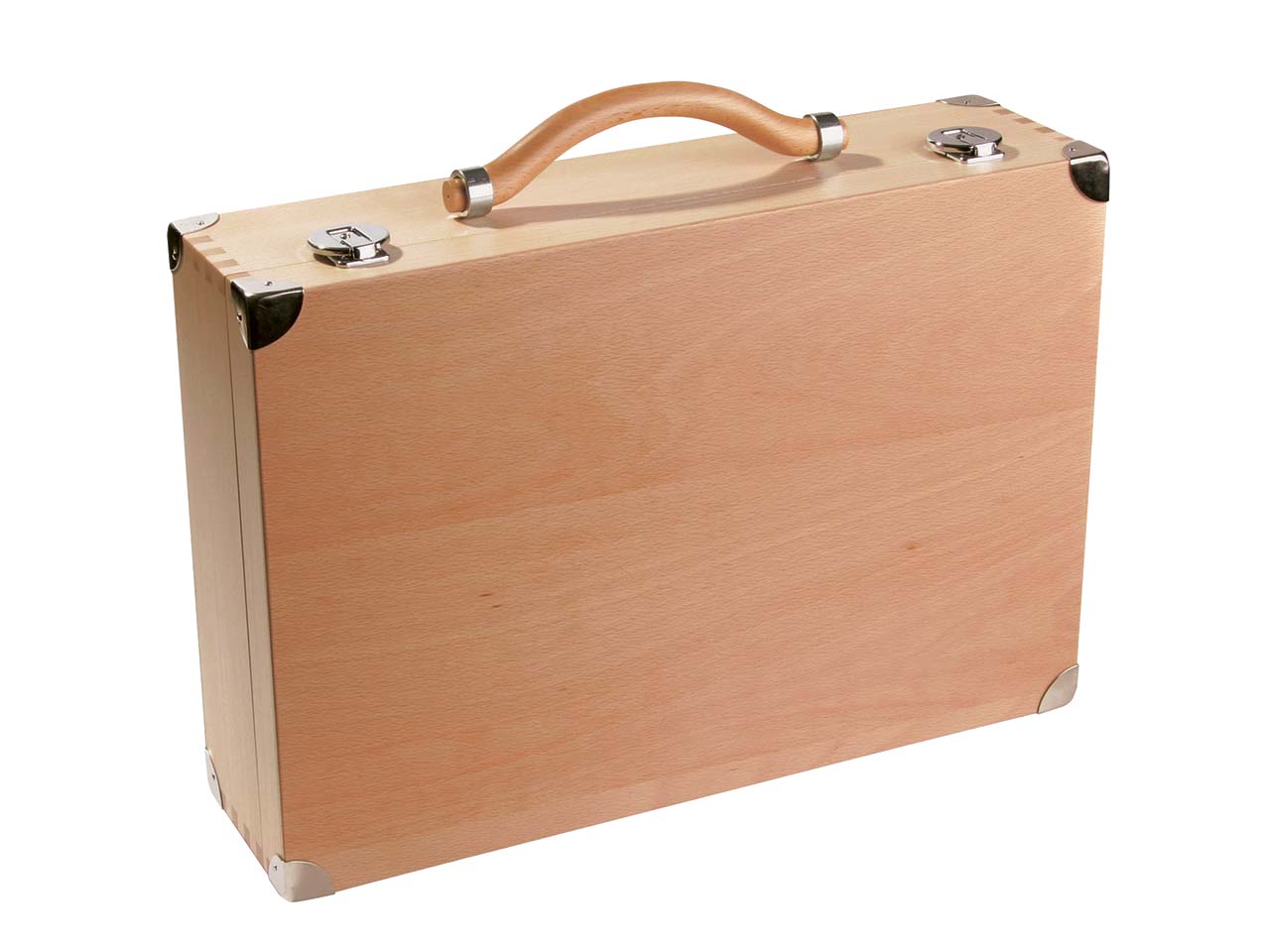 Der Moderationskoffer besteht aus massivem, ausgesuchtem Buche-Hartholz, das auf Wasserbasis lackiert wurde. Holz stammt aus regionaler, deutscher Forstwirtschaft. Herstellung in einer Werkstatt für Menschen mit Behinderung.