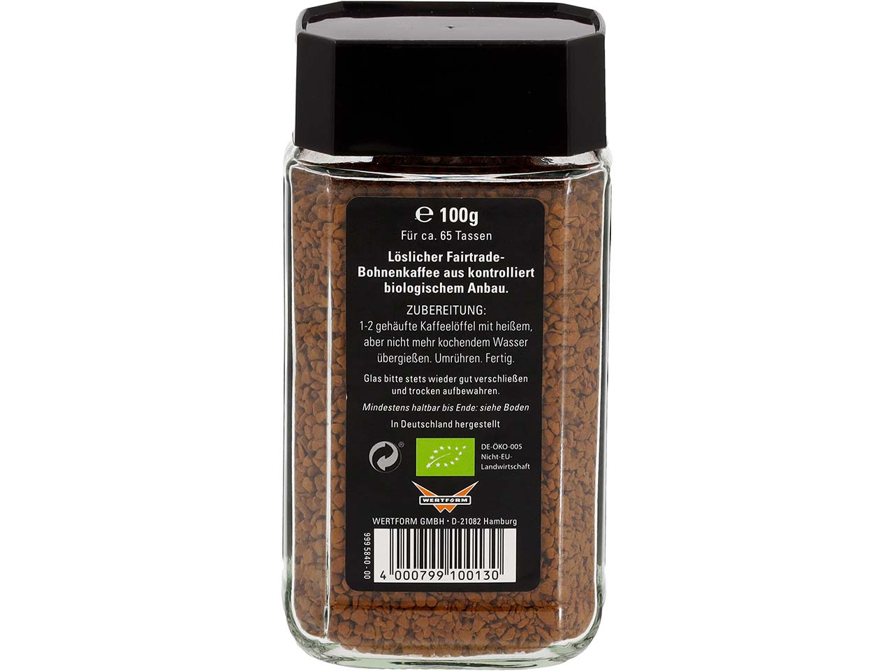 löslicher Bohnenkaffee gefriergetrocknet* *aus kontrolliert ökologischer Erzeugung |