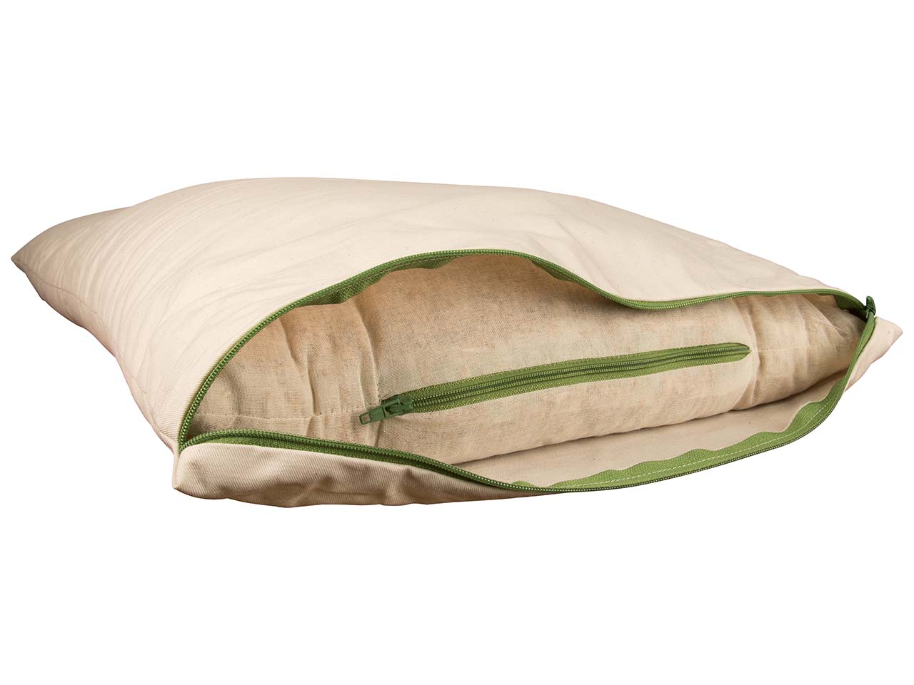 Das feste Kopfkissen mit 100 % Bio-Dinkelspelzfüllung passt sich jeder Bewegung optimal an und sorgt dabei für sichere Stabilität beim Schlafen. Wer öfter mit Verspannungen im Nackenbereich zu kämpfen hat, sollte zu diesem Kissen greifen. Denn die Dinkelspelzen sorgen mit ihrer Formstabilität dafür, dass sich Hals- und Nackenmuskulatur entspannen können. Hier hilft es auch, das Inlett bei 50°C im Backofen aufzuwärmen und das warme Kissen auf die entsprechende Stelle zu legen. Für Menschen, die Probleme bei der Durchblutung haben, gibt es auch gute Nachrichten: das langlebige Naturprodukt fördert nämlich mit seiner Massagewirkung die Durchblutung und raschelt dabei angenehm. Durch die luftdurchlässigen Zwischenräume ist ein Kissen mit Dinkelfüllung auch gut für schnell schwitzende Personen geeignet. Das Kissen besitzt zwei robuste Bezüge aus 100 % Bio-Baumwolle. Im inneren Bezug befindet sich die Kissenfüllung, die mithilfe eines Reißverschlusses individuell angepasst werden kann. Der äußere Bio-Baumwollbezug kann in der Waschmaschine gereinigt werden.