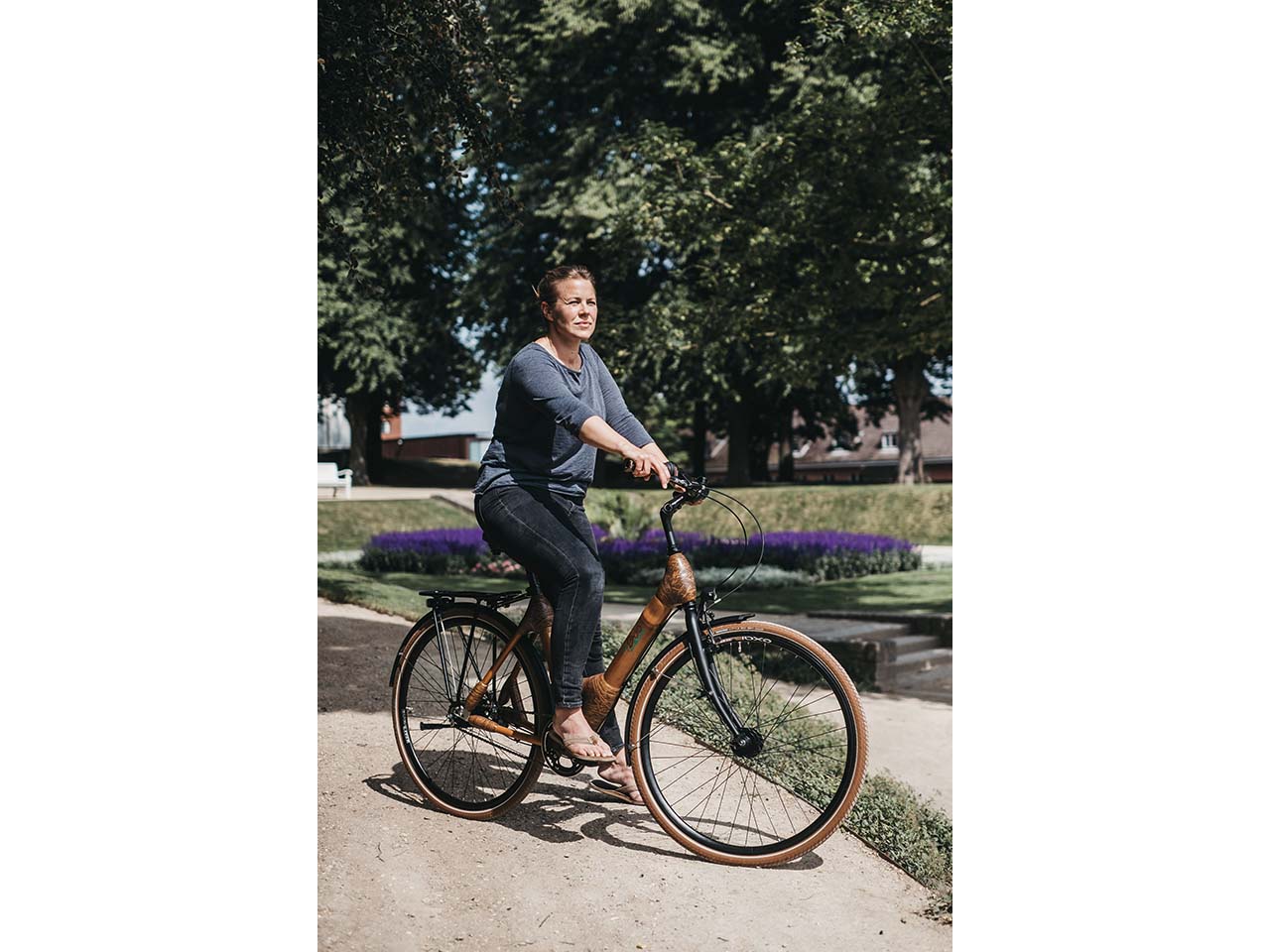 Das "my Pra EQ" eignet sich mit der komfortablen Geometrie und Sitzposition ideal für die tägliche Fahrt in der Stadt. Das Citybike verfügt über eine solide Nexus 7-Gang Nabenschaltung und eine Rücktrittbremse. Optisch überzeugt das Rad mit cremefarbenen Reifen von Schwalbe sowie Sattel und Ledergriffen in Braun. Zusätzlich ist dieses Bambusfahrrad mit Schutzblechen aus Bambus, LED-Front- und Rücklicht von B&M sowie City-Gepäckträger von Ergotec inkl. Federklappe ausgestattet. Das Fahrrad ist nach allen EN-Normen geprüft.