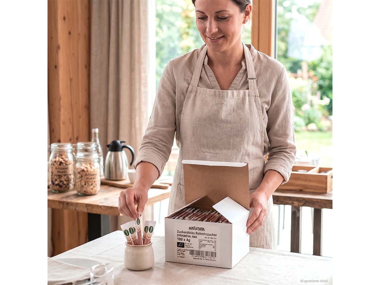 - Rohrzucker in 4-g-Sticks zum Süßen von Heißgetränken