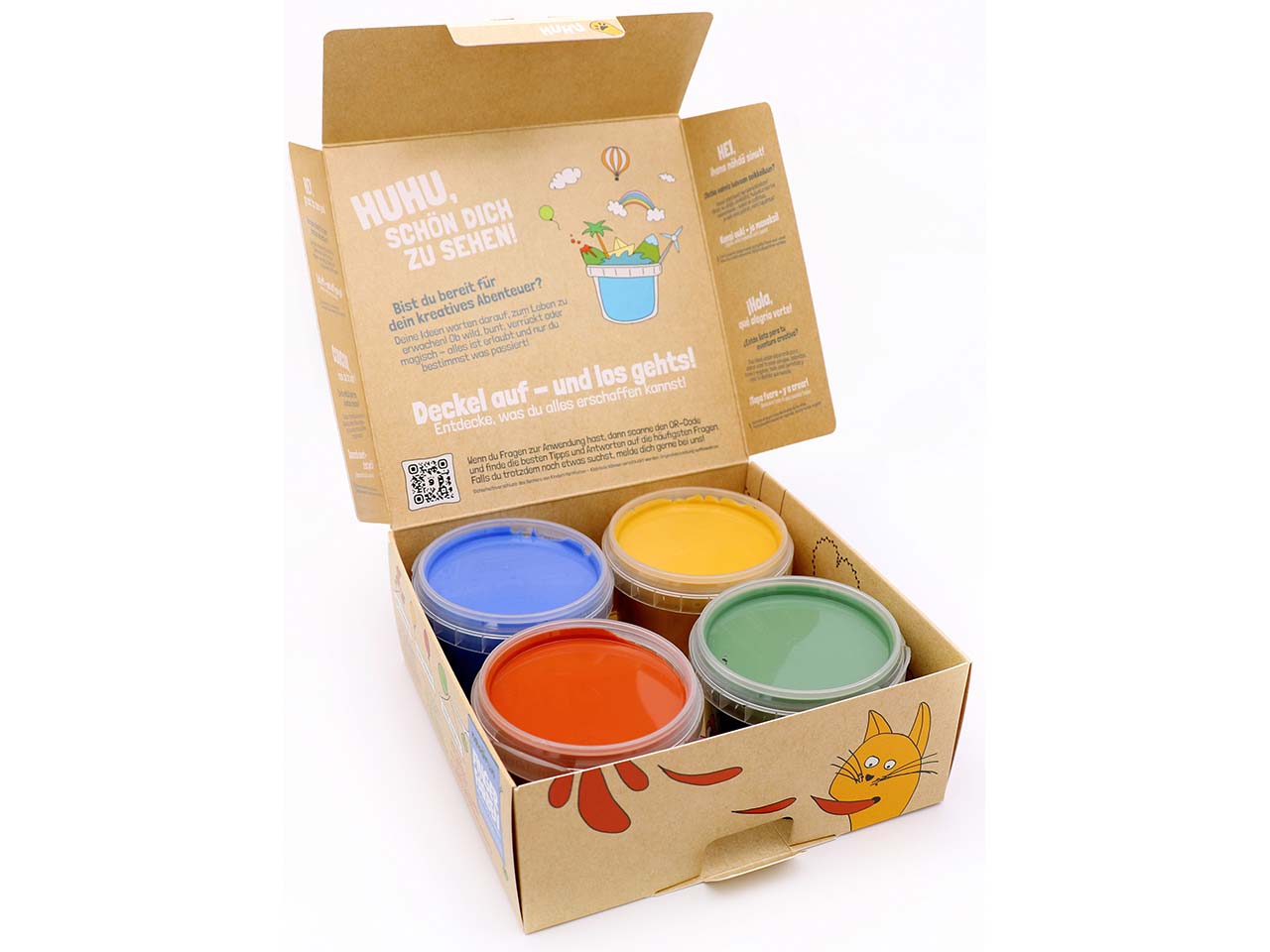 - NCP-zertifizierte Fingerfarben in tropffreier Konsistenz