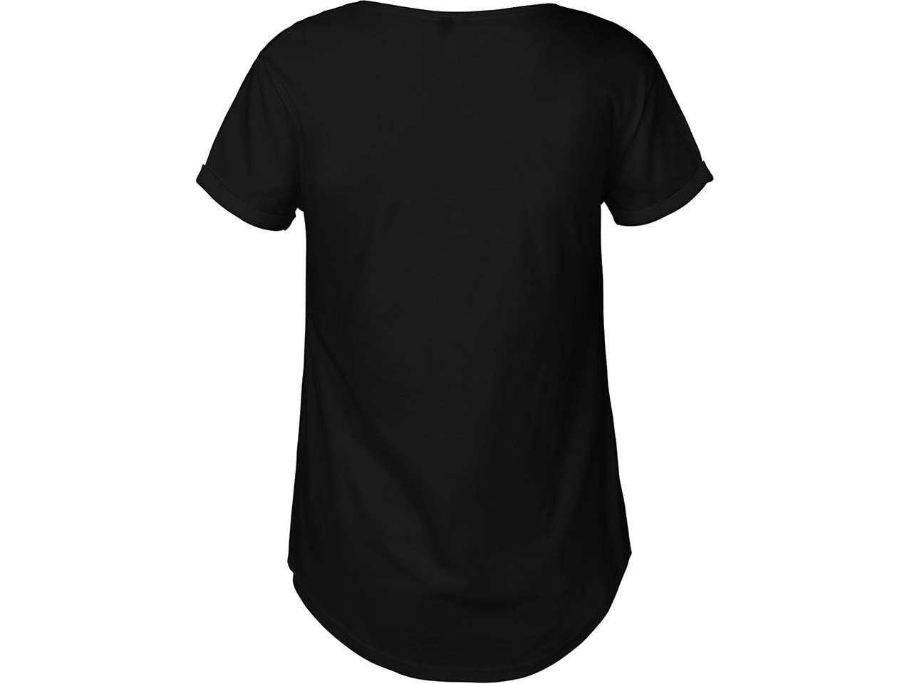 Das T-Shirt sieht auch nach der 40 Grad Wäsche genauso aus, wie vorher. Es hat eine leicht taillierte Form und der etwas tiefere Rücken ist für kräftige, als auch schmale Frauen von Vorteil. Preis-Leistung ist perfekt.