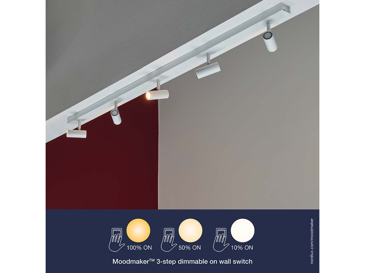 Die fünf Spots der Deckenleuchte spenden warmweißes Licht für den Flur, das Wohn-, Ess- oder Schlafzimmer. Mit ihrer klaren, minimalistischen Formensprache fügt sich die Deckenleuchte in fast jedes Raumkonzept ein. Dank der dreistufigen Dimmfunktion lässt sich das Licht stets an die aktuelle Stimmung anpassen. In der Leuchte sind langlebige, warmweiße LEDs verbaut.