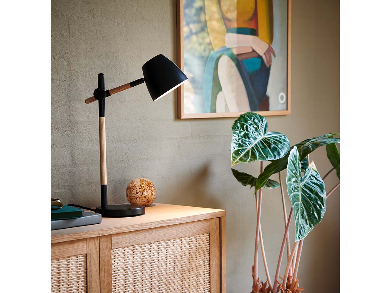 Zum Arbeiten, zum Lesen oder einfach, weil sie schön ist: Diese Tischleuchte beweist, dass moderner Style und Natürlichkeit perfekt zusammenpassen! Die Leuchte findet Platz auf Schreib- oder Beistelltischen und wirkt mit ihrem Materialmix sehr modern. Der kühle Eindruck des Metalls wird durch das helle Eschenholz wunderbar aufgebrochen. Es entsteht ein stimmiges Bild, das Behaglichkeit vermittelt. Praktisch: Der Lampenkopf ist flexibel und lässt sich verstellen. So kann das Licht je nach Tätigkeit angepasst werden. Die Lieferung erfolgt ohne Leuchtmittel. Mit GU10-Fassung.