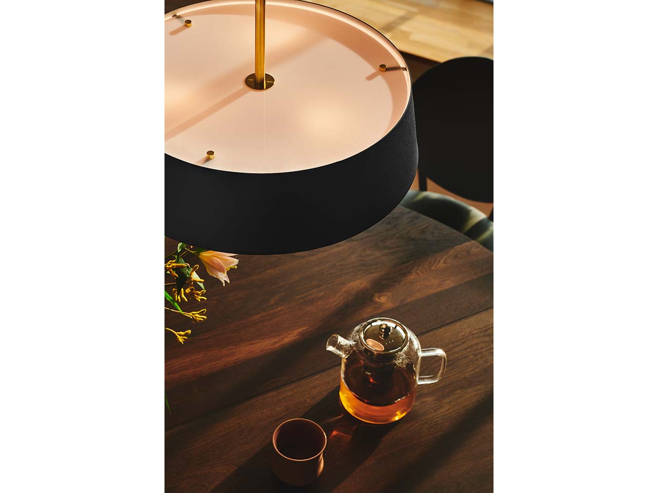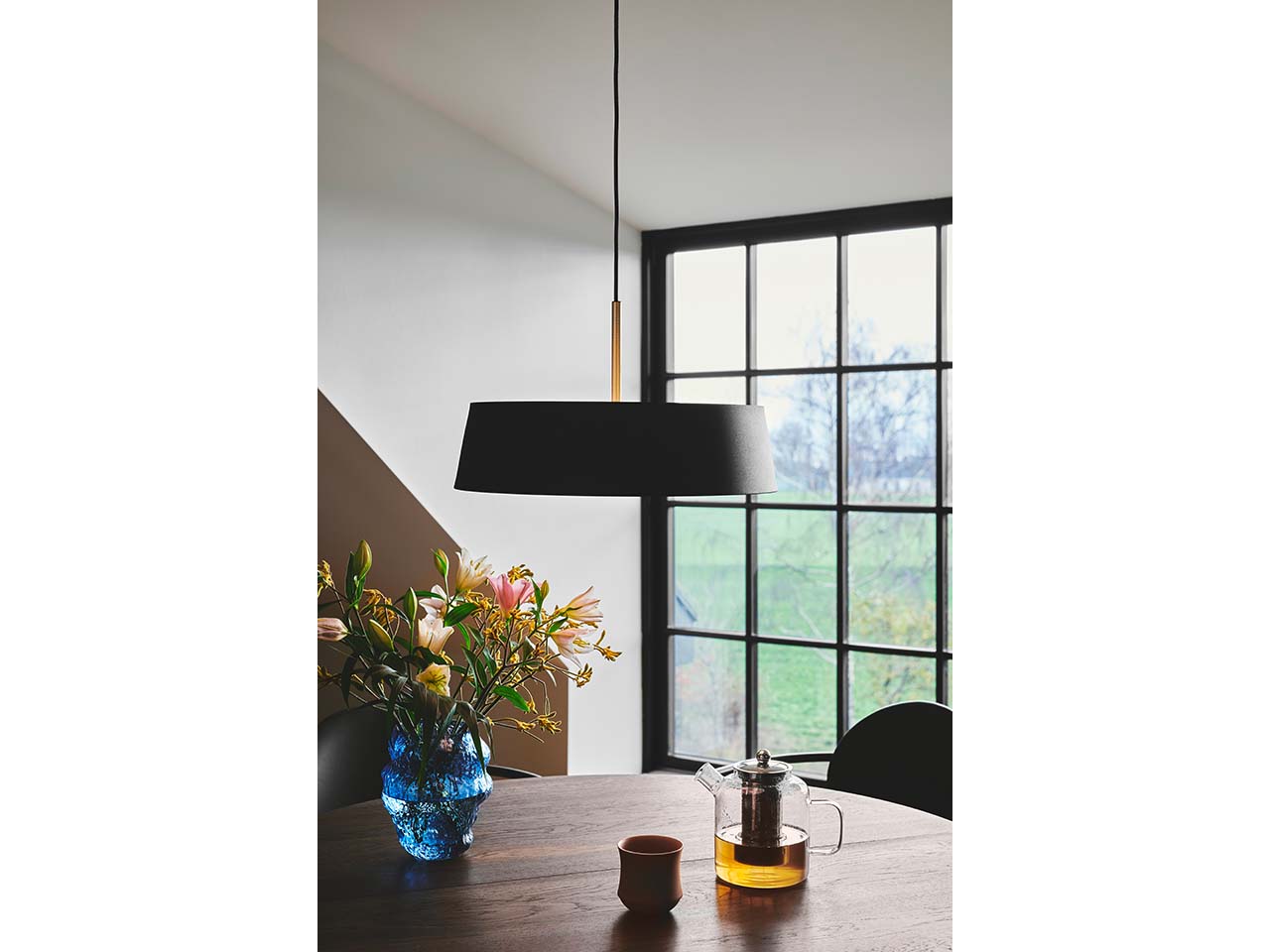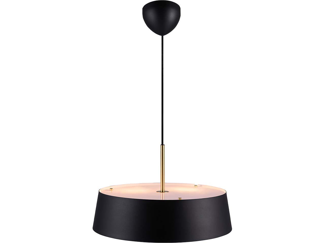 Hier trifft moderne Eleganz auf klassisches Design! Die Pendelleuchte mit schwarzem Metallschirm und leichter Messingaufhängung fügt sich in Ess-, Schlaf- oder Wohnzimmer hervorragend ein. Die Leuchte hat einen breiten Schirm, der ein breites Lichtfeld schafft. Die Diffusoren erzeugen blendfreies Licht. Die Leuchte mit E14-Fassung wird ohne Leuchtmittel geliefert und kann individuell bestückt werden.
