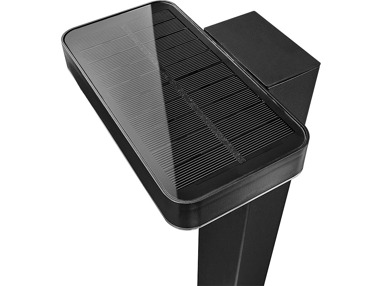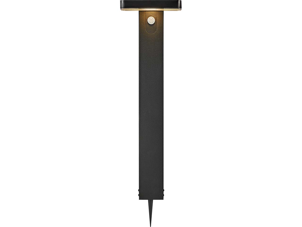 Diese modern und minimalistisch designte Pollerleuchte eignet sich für vielfältige Einsatzmöglichkeiten. Sie ist solarbetrieben und lädt sich tagsüber über das Sonnenlicht auf. Dank des Bewegungssensors schaltet sich die Stableuchte automatisch ein. Das nach unten gerichtete Licht ist ideal, um Eingangsbereichen, die Auffahrt oder ähnliche Flächen zu beleuchten. Mit dem mitgelieferten Erdspieß lässt sich die Leuchte einfach montieren. Die integrierte warmweiße LED sorgt für angenehmes Licht.