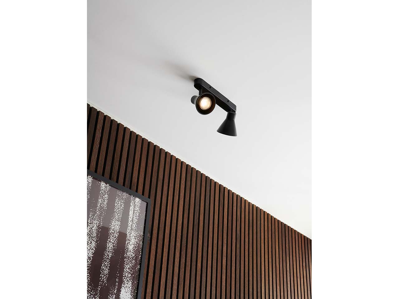 Schlicht und modern fügt sich diese Lampenleiste in bestehende Wohnkonzepte ein. Die Wand- oder Deckenbeleuchtung eignet sich für Wohn- oder Schlafzimmer, Esszimmer oder den Flur. Die Lampenschirme sind schwenk- und drehbar, sodass das Licht genau dorthin gerichtet werden kann, wo es gebraucht wird. Die Leuchte aus langlebigem, robustem Metall hat eine GU10-Fassung und wird ohne Leuchtmittel geliefert.