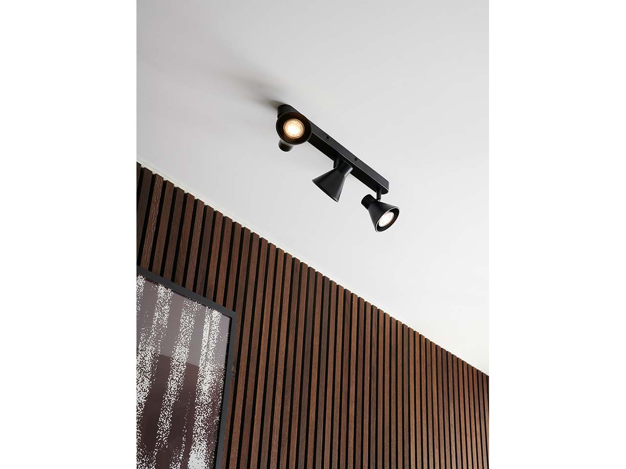 Diese Lampenleiste mit 3 Spots ist ideal, um für eine gemütliche Atmosphäre zu sorgen oder um Bereiche in Szene zu setzen. Die Wand- oder Deckenleuchte eignet sich unter anderem für Wohn-, Schlaf- oder Esszimmer. Da die Lampenschirme dreh- und schwenkbar sind, kann das Licht immer genau dorthin geleuchtet werden, wo es sein soll. Hergestellt ist die Leuchte mit GU10-Fassung aus langlebigem, robustem Metall. Die Lieferung erfolgt ohne Leuchtmittel, sodass eine individuelle Bestückung möglich ist.