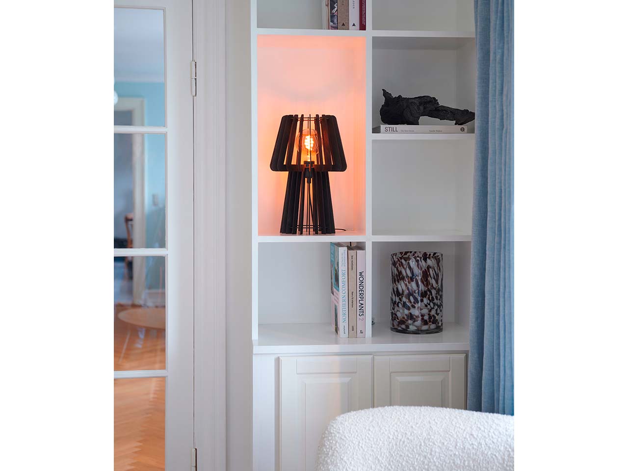 Einzigartig schön: Die Holzstruktur der offenen Tischleuchte bringt ein Stück Natur ins eigene Zuhause. Gleichzeitig sorgt das Design für ein wunderschönes Licht- und Schattenspiel, das die Leuchte auszeichnet. Durch die Lamellen scheint auch das Leuchtmittel durch, weswegen sich die Tischleuchte perfekt für eine dekorative Glühlampe eignet. So wird sie auch zu einem ganz individuellen Designobjekt im Wohn- oder Schlafzimmer. Die Leuchte mit E27-Fassung ist in ansprechendem Braun- oder modernem Schwarzton erhältlich. Die Lieferung erfolgt ohne Leuchtmittel, sodass dieses nach Bedarf ausgewählt werden kann.