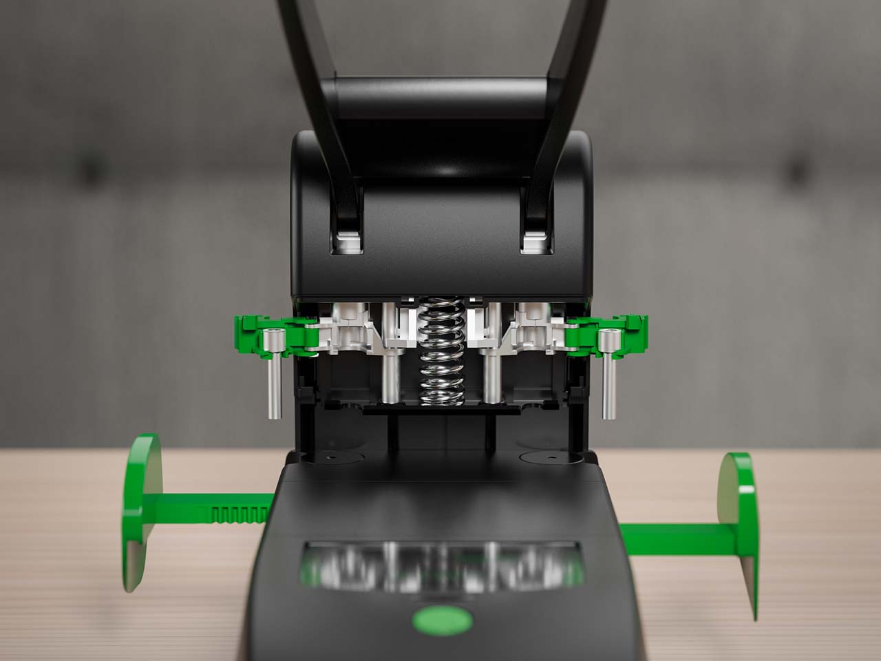 Dieser leistungsstarke 2-in-1 Blocklocher verarbeitet bis zu 200 Blatt (80 g/m²) und eignet sich für Blätter von Format DIN A6 bis DIN A4. Die verschiebbare Justiereinheit macht die Vierfach-Lochung ganz einfach. Mit dem Komfortgriff gestaltet das Lochen zudem mühelos. In der Lieferung sind sechs zusätzliche Matrizen enthalten. Die Verschleißteile lassen sich werkzeuglos austauschen. Durch die Herstellung aus Vollmetall ist der Locher ein langlebiger Begleiter in Büro und Homeoffice. Die Kunststoffteile bestehen zu 78 % aus Recyclingmaterial.