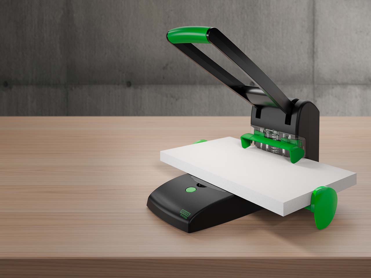 - Mit einer Lochleistung von bis zu 200 Blatt (80 g/m²)
