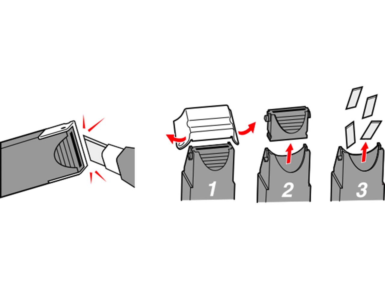 Die Ersatzklingen für den Cutter „eL500“ zeichnen sich durch ihre hochwertige, scharfe Qualität aus. Sie lassen sich einfach austauschen und dank der Aufbewahrungsbox mit Klingenabbrechfunktion auch ganz leicht entsorgen. Die Box ist aus recyceltem Kunststoff gefertigt. Inhalt 10 Stk.