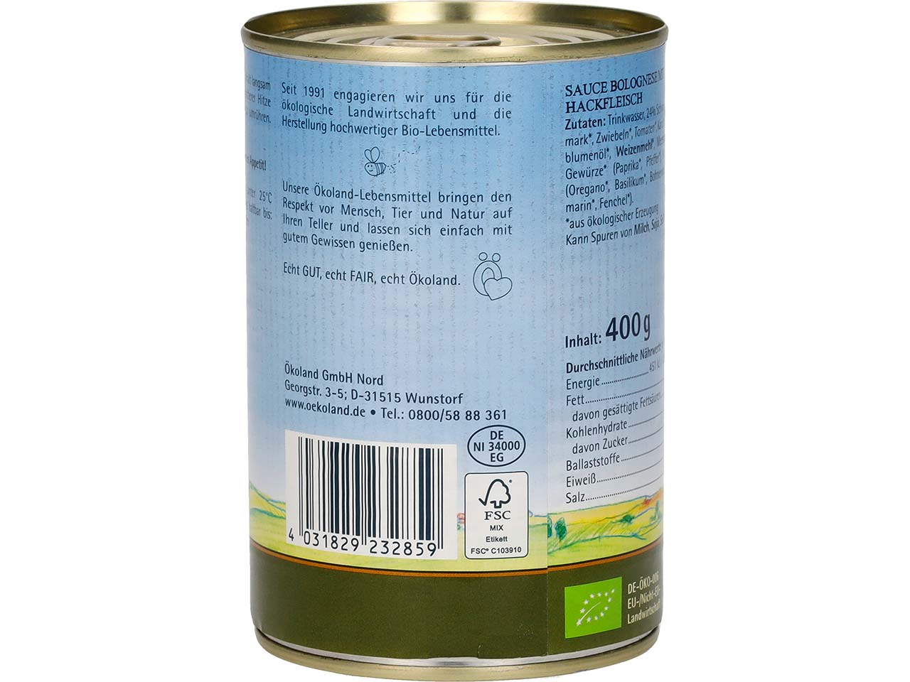 Ökoland Bio-Sauce Bolognese mit Hackfleisch