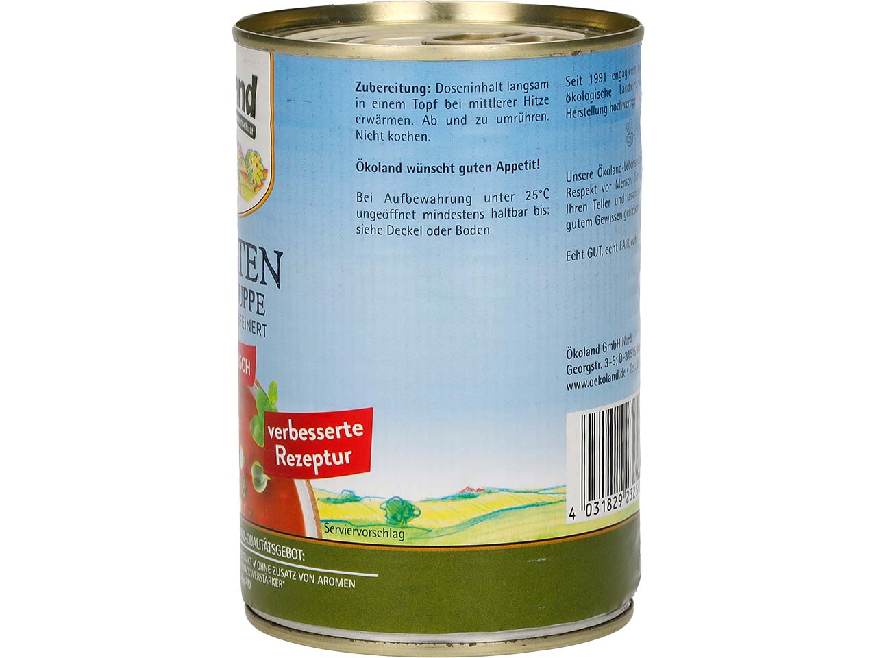 Der Klassiker unter den Suppen und immer ein Genuss: Die Tomaten-Cremesuppe mit intensivem Aroma und Zutaten aus kontrolliert ökologischer Erzeugung ist schnell zubereitet. Die vegetarische Suppe ist mit einer feinen Kräutermischung perfekt abgeschmeckt. Die Sahne verleiht der Tomatensuppe ihre einzigartige Cremigkeit.