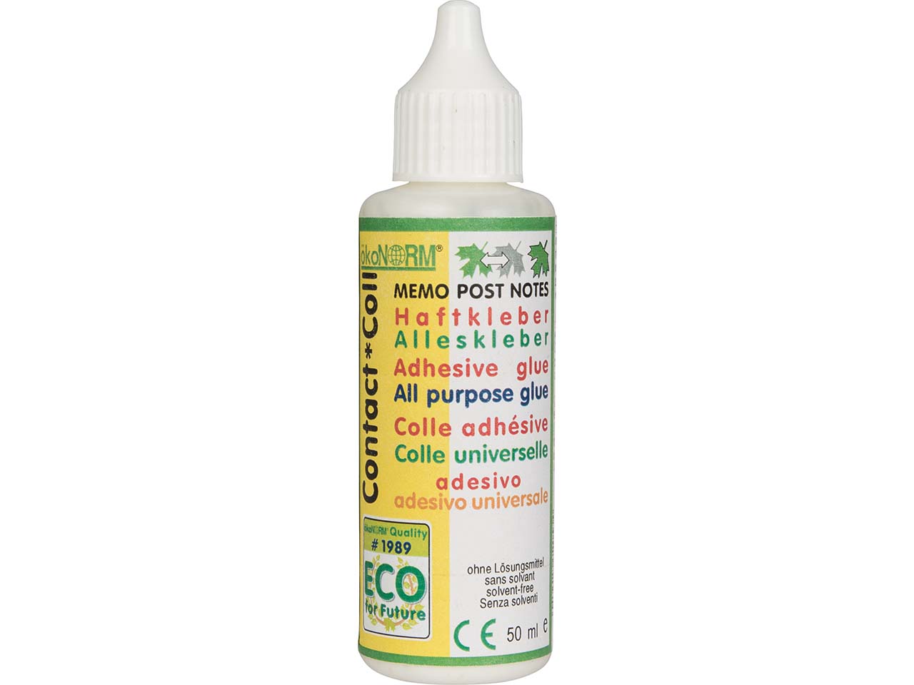 Der ökoNORM Flüssigkleber "Contact-Coll" ist auf zwei Arten nutzbar. Nass verklebt verbindet der Alleskleber selbst schwierige Materialien zuverlässig und dauerhaft. Als Haftkleber verwendet wird der Klebstoff auf Oberflächen aufgetragen. Ist der Klebstoff trocken und transparent, kann der Gegenstand immer wieder überall angeheftet und rückstandsfrei abgelöst werden. Mit praktischem Verstreichverschluss für ein einfaches Auftragen! Inhalt 50 ml.