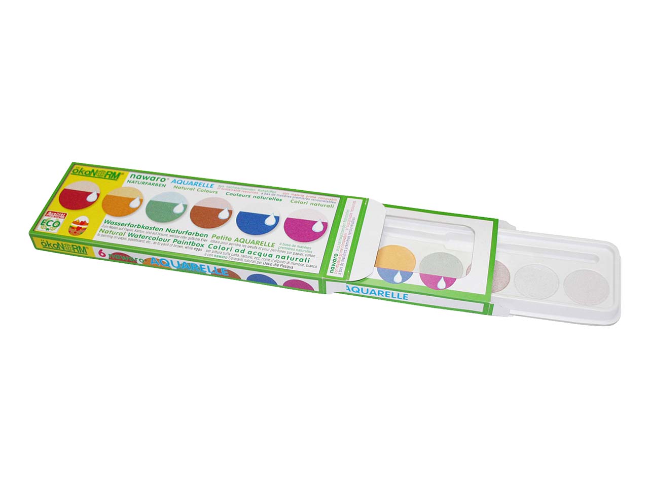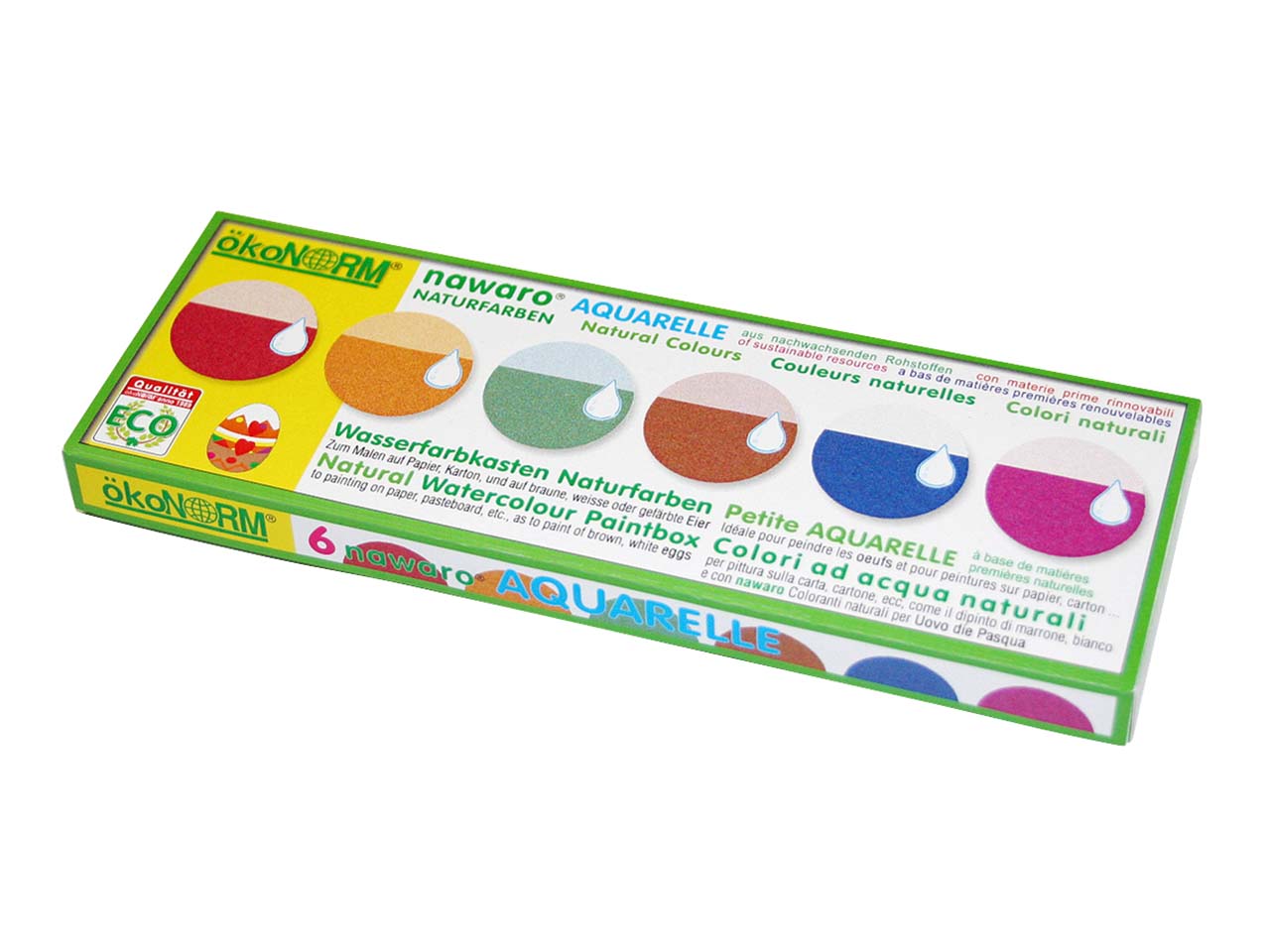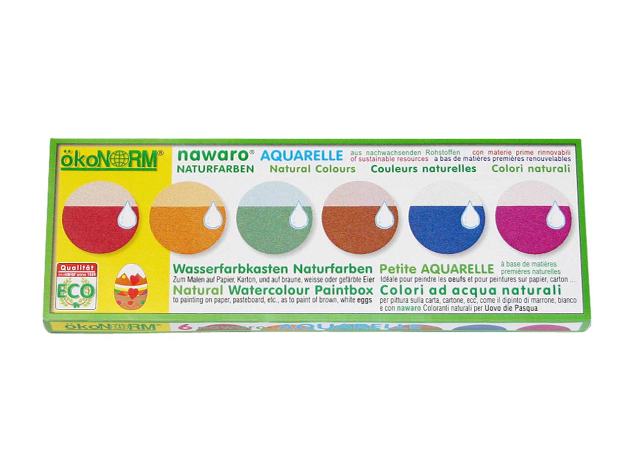 Der kleine nawaro Wasserfarbenkasten ist zum Malen auf Papier, Pappe und zum Bemalen von braunen, weißen und mit nawaro Eierfarben gefärbten Eiern bestens geeignet. Es entstehen die auf der Verpackung abgebildeten Farben. Farben bitte vor Sonne schützen. Lieferung inklusive kleinem Pinsel. B 8 x T 9 x H 1,5 cm.
