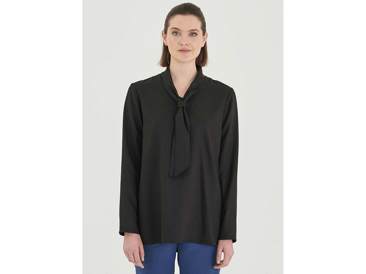 - Lockere Schluppenbluse mit langen Ärmeln
