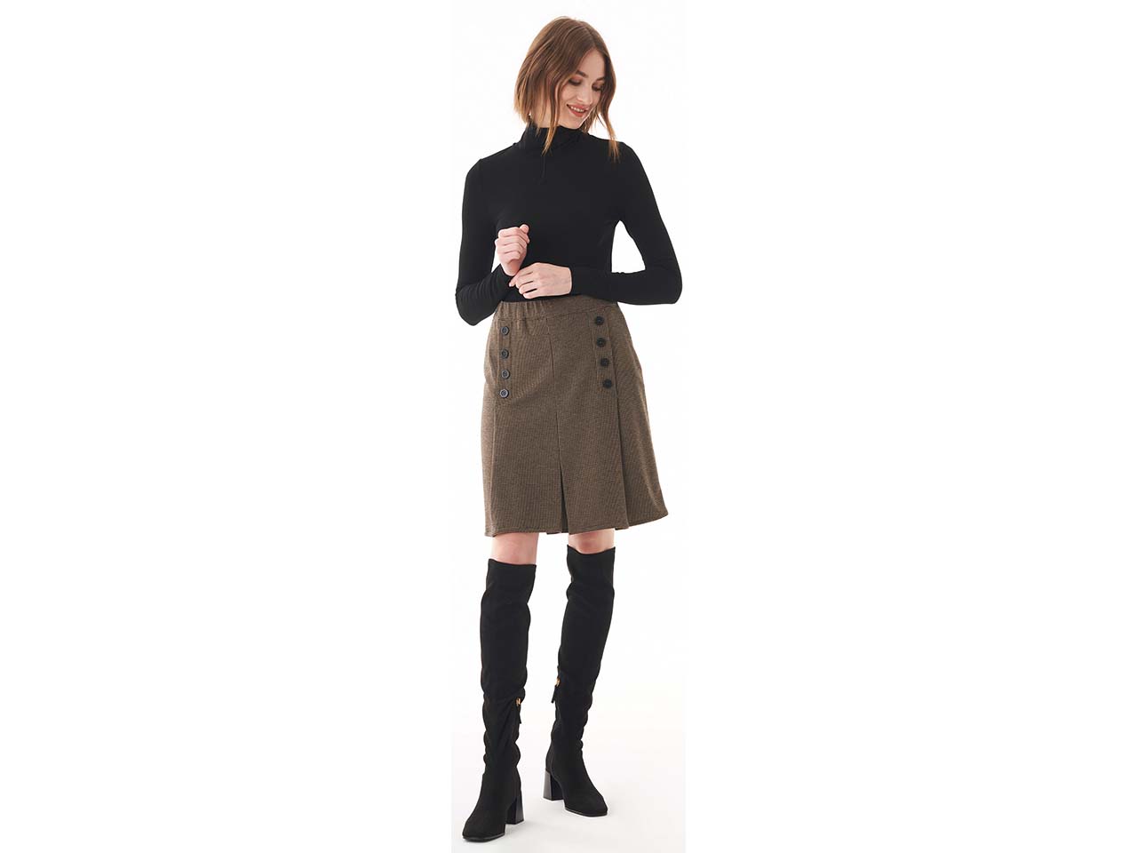 ORGANICATION Bio-Damen-Faltenrock mit dekorativen Vorderknöpfen, knielang