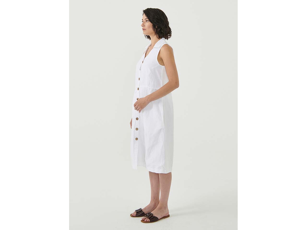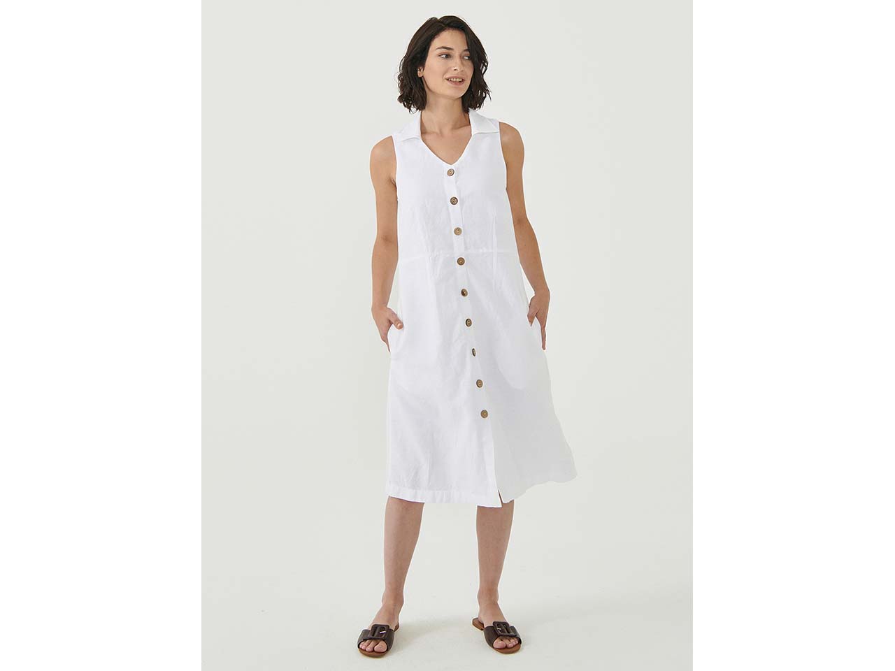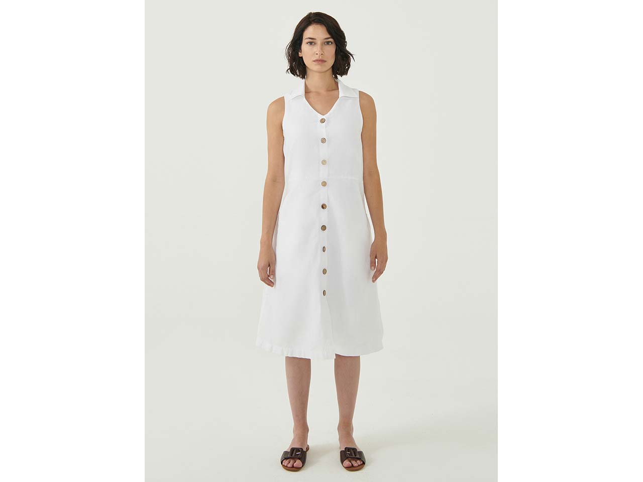 Sobald die Temperaturen steigen gibt es einen Klassiker, der in keinem Kleiderschrank fehlen sollte: das weiße Leinen-Kleid! Das Must-have von ORGANICATION ist vielseitig kombinierbar und garantiert durch den tollen Materialmix aus Leinen und Bio-Baumwolle einen sehr hohen Tragekomfort. Durch den Kragen lässt sich das Kleid vor allem elegant mit schönen Sandaletten oder hohen Schuhen im Büro tragen oder zu einer sommerlichen Gartenparty ausführen. Aber auch mit bequemen Espadrilles ist es in jedem Sommerurlaub ein treuer Begleiter. Und keine Sorge vor ungewollten Unterwäsche-Blitzern: Das Kleid ist innen voll gefüttert und so ist Frau rundum blickdicht verpackt!