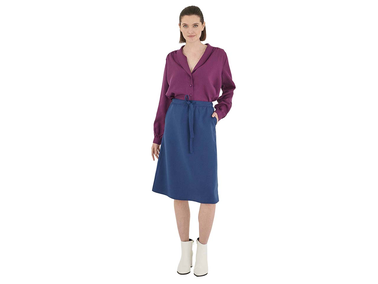 Knielanger Damen-Rock mit Tunnelzug-Bund