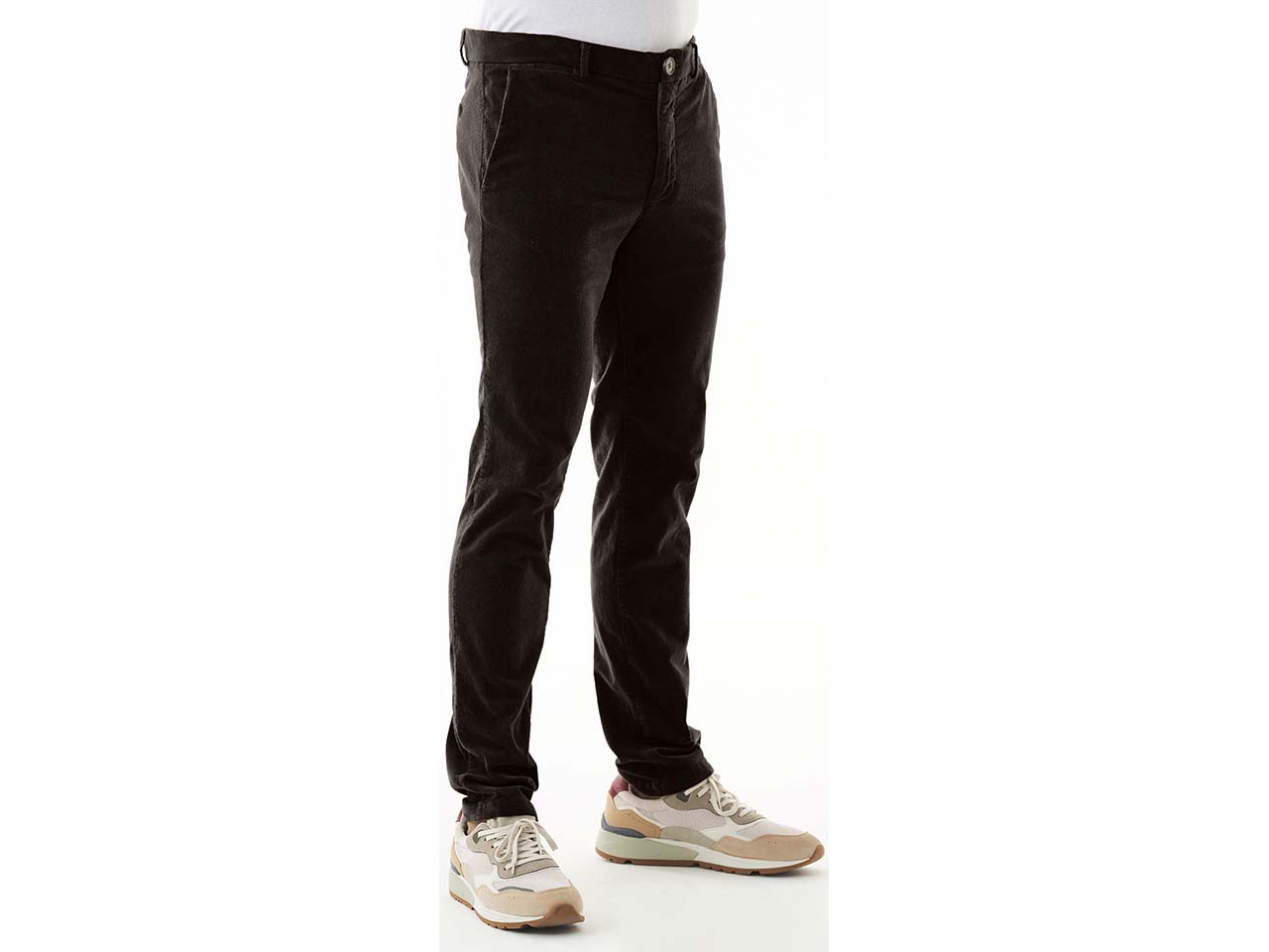 Lässigkeit und Tragekomfort zusammen in einem Kleidungsstück! Cordhosen sind wieder angesagt. Der robuste Cordstoff besteht aus GOTS-zertifizierter Bio-Baumwolle, die sich wunderbar weich auf der Haut anfühlt. Auch optisch hat die Hose viel zu bieten: Sie sitzt dank Slim Fit und dem geringen Anteil Elasthan perfekt am Körper. Die seitlichen Taschen sind ebenso praktisch wie die Gesäßtaschen, die geknöpft sind. Hier kommen ausschließlich vegane Knöpfe zum Einsatz. Die Cordhose ist ideal für Freizeit, Alltag und Büro.