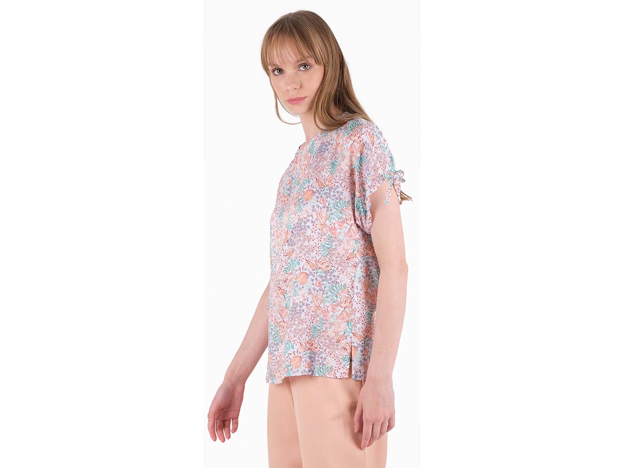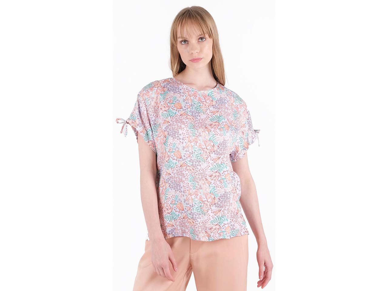 Schon beim Anblick dieses Oberteils denkt man an den Sommer! Das florale Muster ist genauso ein Highlight wie der verspielte Stil, der sich in den Bindebändchen an den Ärmeln und dem Rückenausschnitt zeigt. Hoher Tragekomfort entsteht durch die Fertigung aus der nachhaltigen Viskosefaser EcoVero™, die atmungsaktiv, feuchtigkeitsregulierend und leicht kühlend ist. Die Bluse ist ein echter Allrounder und lässt sich vielseitig mit z.B. Rock, Shorts oder Jeans kombinieren.