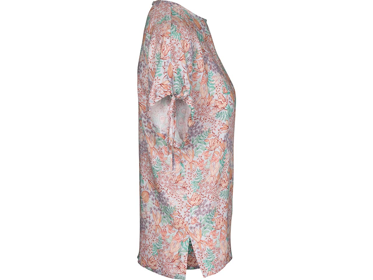 Schon beim Anblick dieses Oberteils denkt man an den Sommer! Das florale Muster ist genauso ein Highlight wie der verspielte Stil, der sich in den Bindebändchen an den Ärmeln und dem Rückenausschnitt zeigt. Hoher Tragekomfort entsteht durch die Fertigung aus der nachhaltigen Viskosefaser EcoVero™, die atmungsaktiv, feuchtigkeitsregulierend und leicht kühlend ist. Die Bluse ist ein echter Allrounder und lässt sich vielseitig mit z.B. Rock, Shorts oder Jeans kombinieren.
