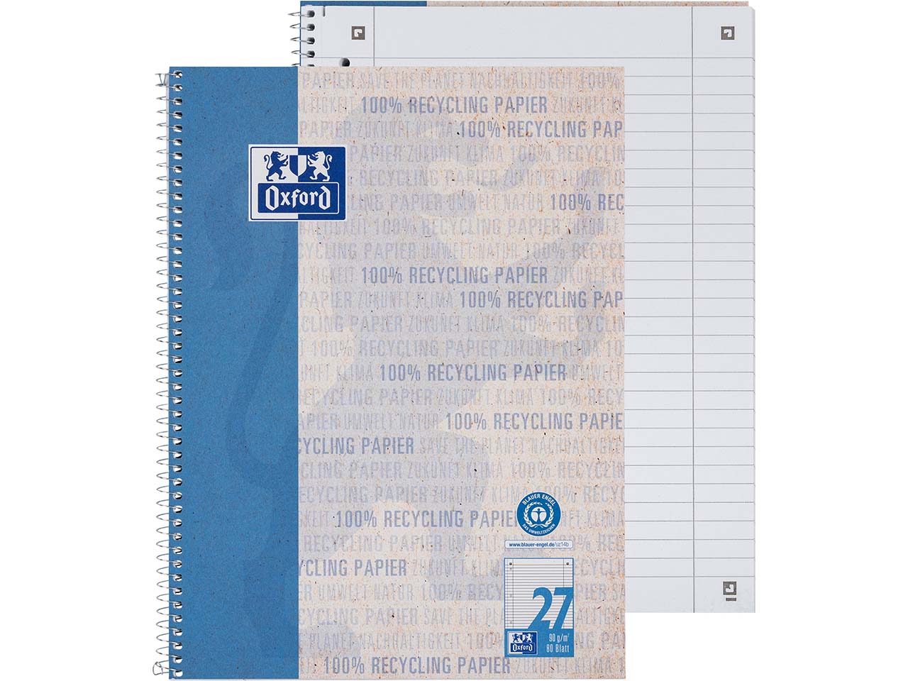 OXFORD Recycling-Collegeblock DIN A4+, 80 Blatt, liniert mit Doppelrand, 90 g/m²