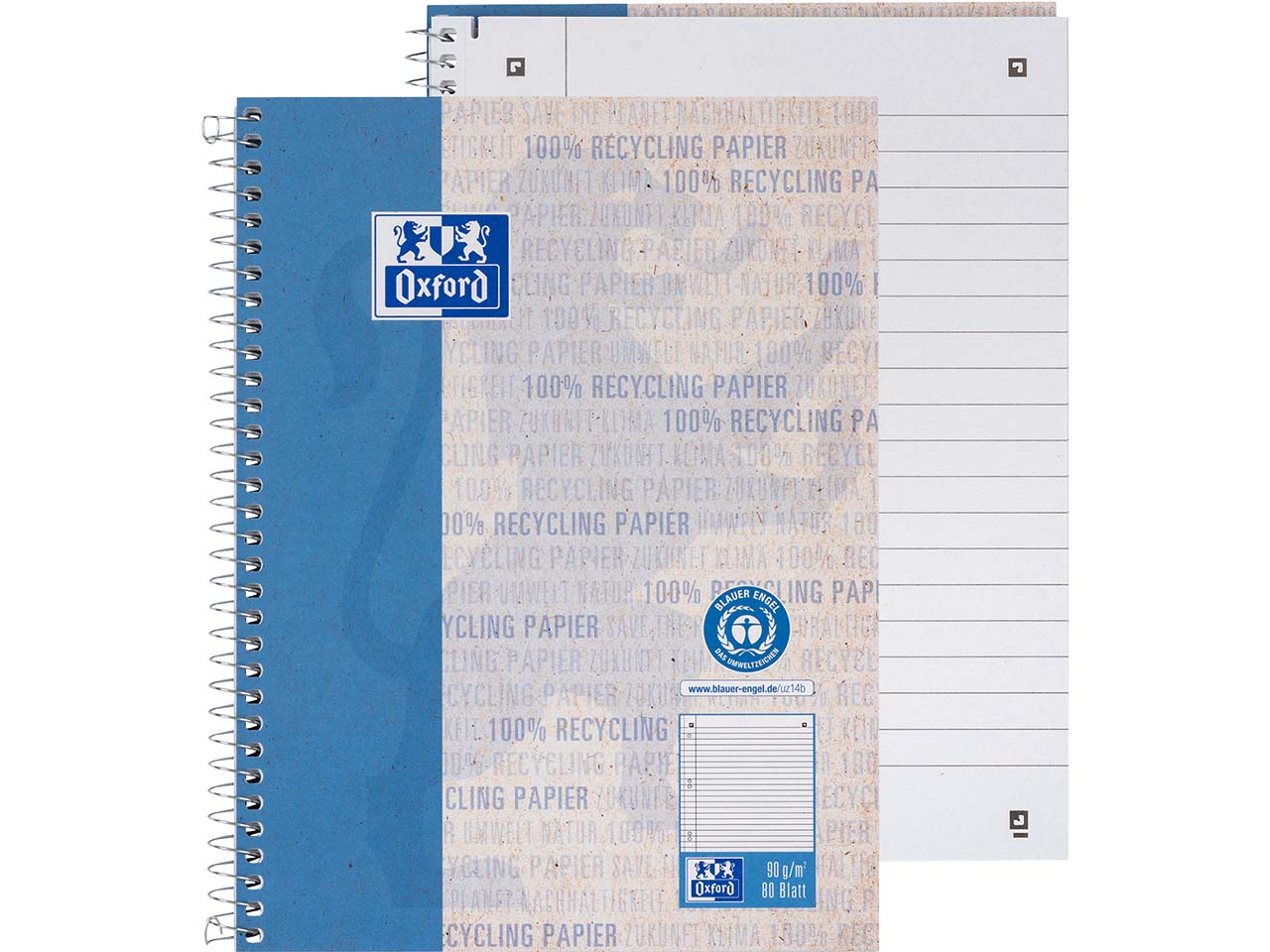 OXFORD Recycling Collegeblock A5+, 80 Blatt, liniert mit Rand links, 90 g/m²