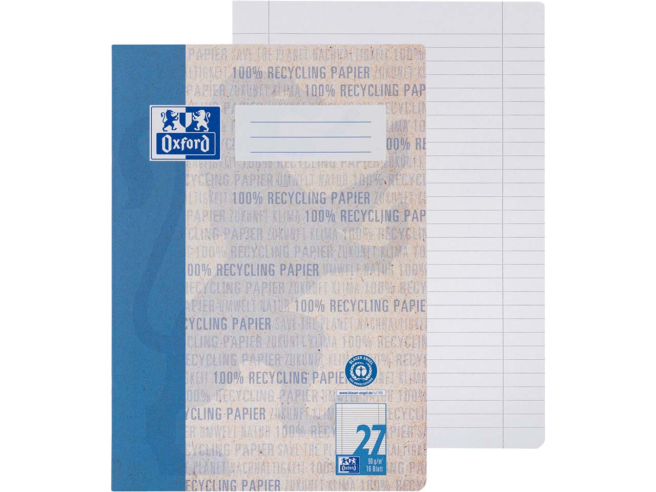 Das Schulheft von OXFORD ermöglicht dank OPTIK PAPER®, einem besonders exklusiven Papierstandard auf Recyclingbasis, ein weiches, flüssiges Schreiberlebnis. Das Schreibheft mit Lineatur 27 ist mit dem Blauen Engel ausgezeichnet. Ein Beschriftungsfeld und das Löschblatt vereinfachen den Schulalltag.
