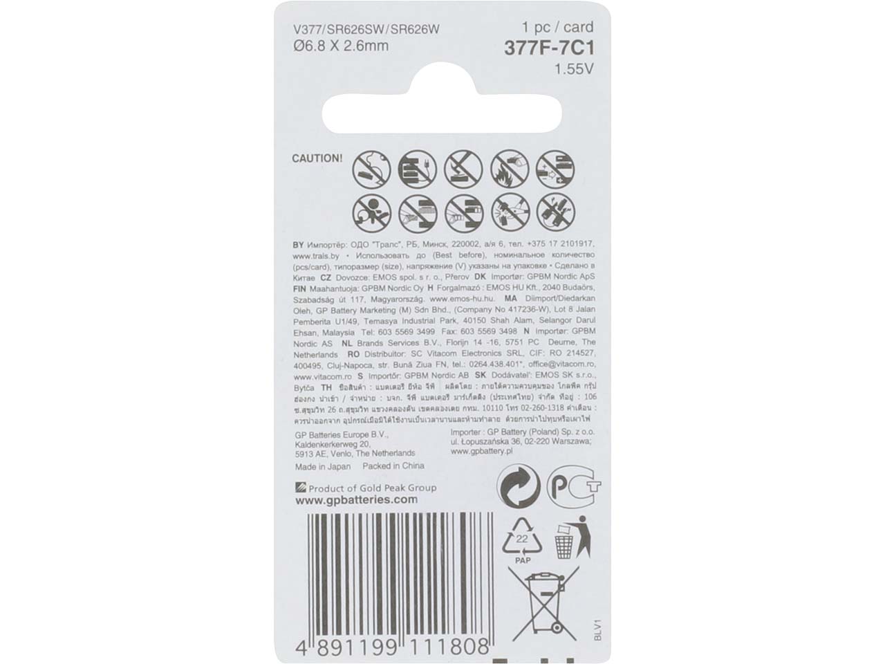Die Uhrenbatterie 377 von GP Battery zeichnet sich durch Zuverlässigkeit aus! Die Silberoxid-Knopfzelle versorgt Uhren mit der nötigen Energie, sodass man immer genau weiß, wie spät es ist und keine Termine mehr verpasst. Die Uhrenbatterie hat eine Spannung von 1,5 V und einen Durchmesser von 6,8 mm. 1 Pack = 1 Stk.