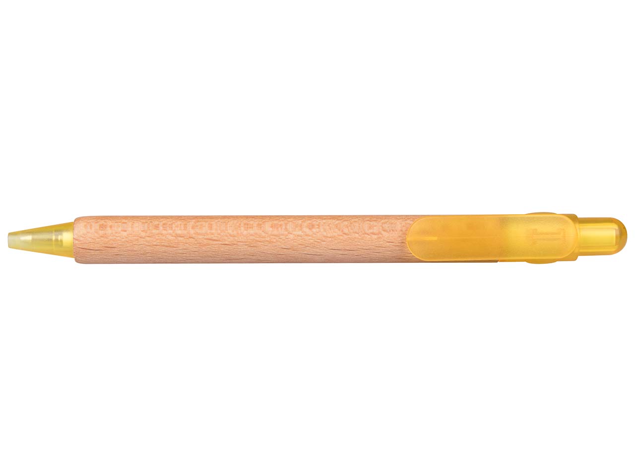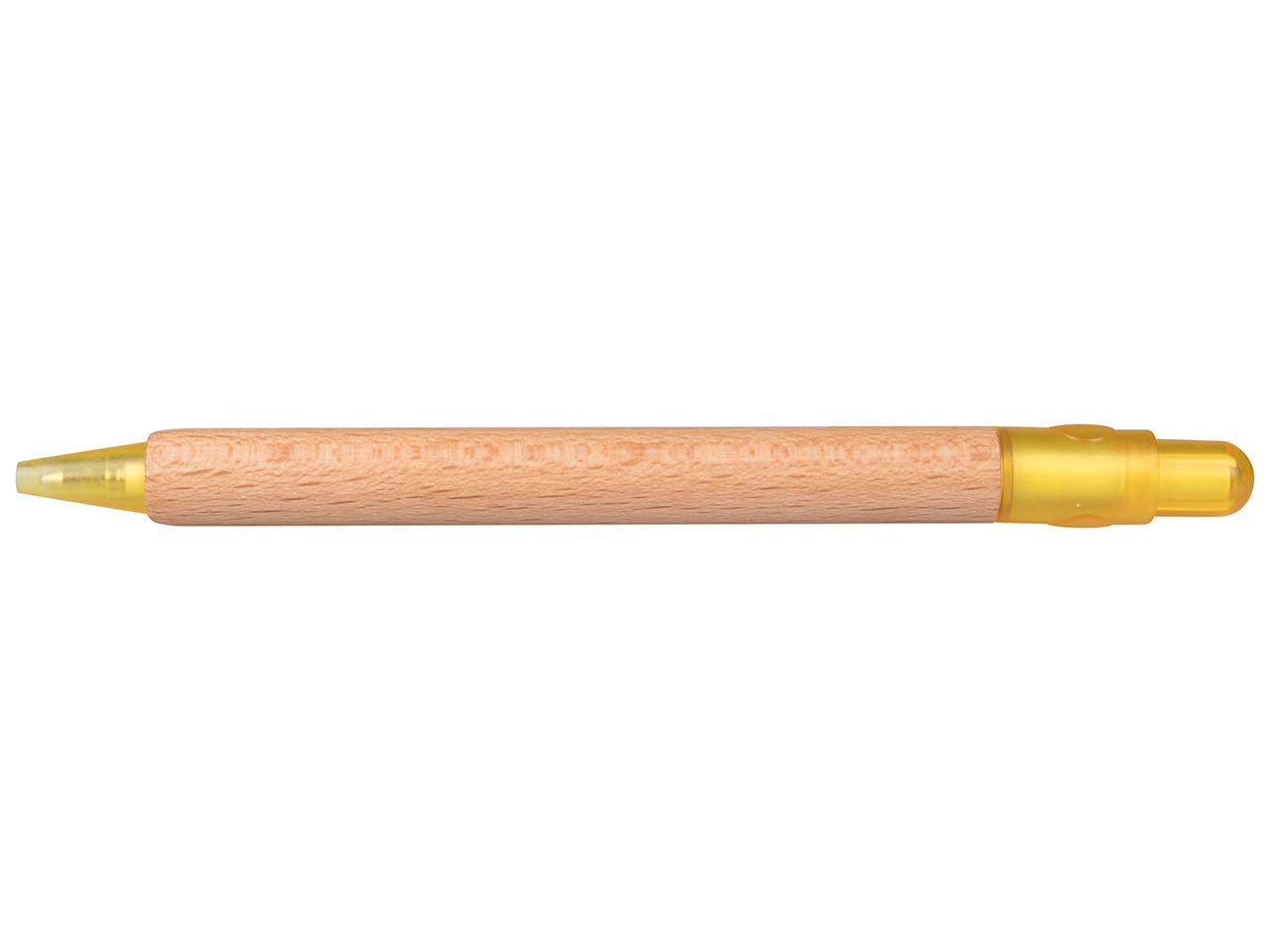 Der Kugelschreiber "Prisma" mit Druckmechanik besticht durch die gelungene, frisch wirkende Kombination aus Holz und farbigem Kunststoff in gefrosteter Optik. Der griffige Schaft aus heimischer Buche ist farblos schutzlackiert, die Beschlagteile sind aus robustem, chlorfreiem ABS. Inkl. austauschbarer X-20-Mine. Schreibfarbe blau.