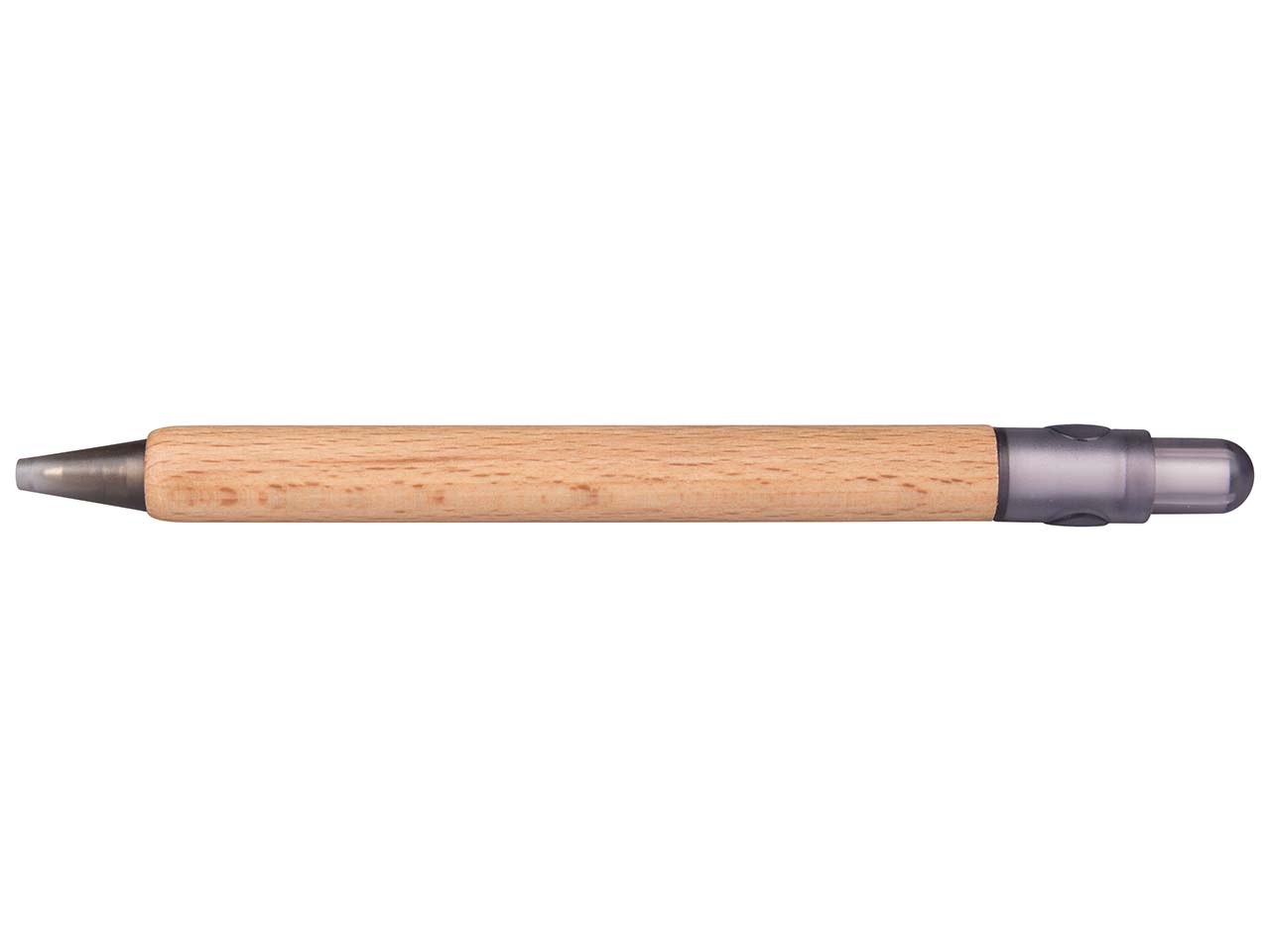 Der Druckkugelschreiber "Prisma" überzeugt mit Optik und Funktion. Der Schaft ist aus robustem, naturfarben schutzlackiertem Buchenholz, die Kunststoffteile aus schlagfestem, chlorfreiem ABS gefertigt. Die Herstellung erfolgt in Deutschland. Die Mine ist nach ISO 12757-2 dokumentenecht und lässt sich austauschen. Strichstärke 0,6 mm. Schreibfarbe blau.