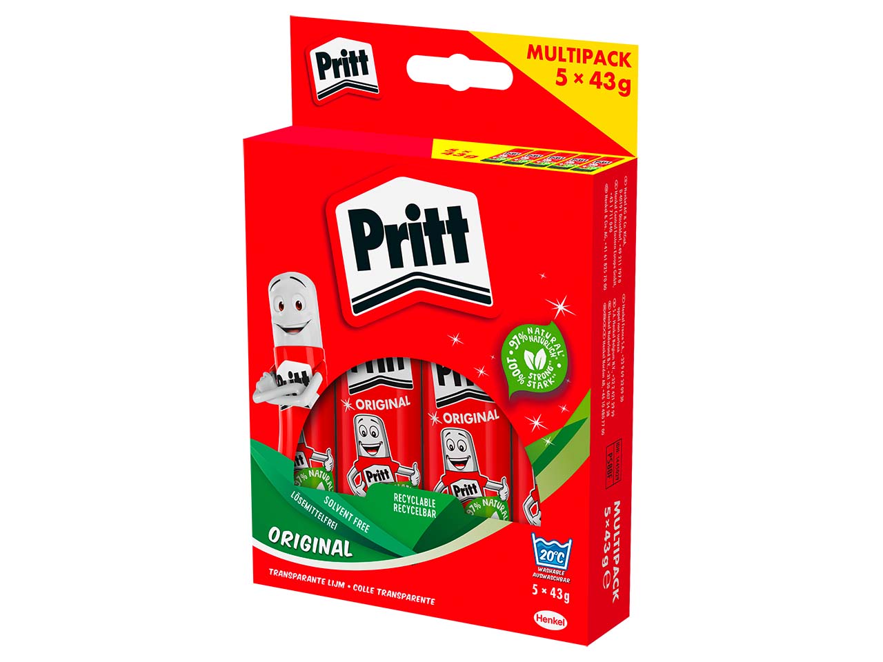 Die Pritt Klebestifte im Bonuspack sind für viele Anwendungen geeignet! Das Gehäuse besteht zu 70 % aus Recyclingkunststoff und die Klebemasse ist sogar zu 90 % aus naturbasierten Rohstoffen hergestellt. Gut zum Kleben größerer Flächen geeignet. Luftdichter Verschluss für eine lange Haltbarkeit. Auswaschbar bei 30 °C. Inhalt 43 g. 1 Pack = 5 Stk.