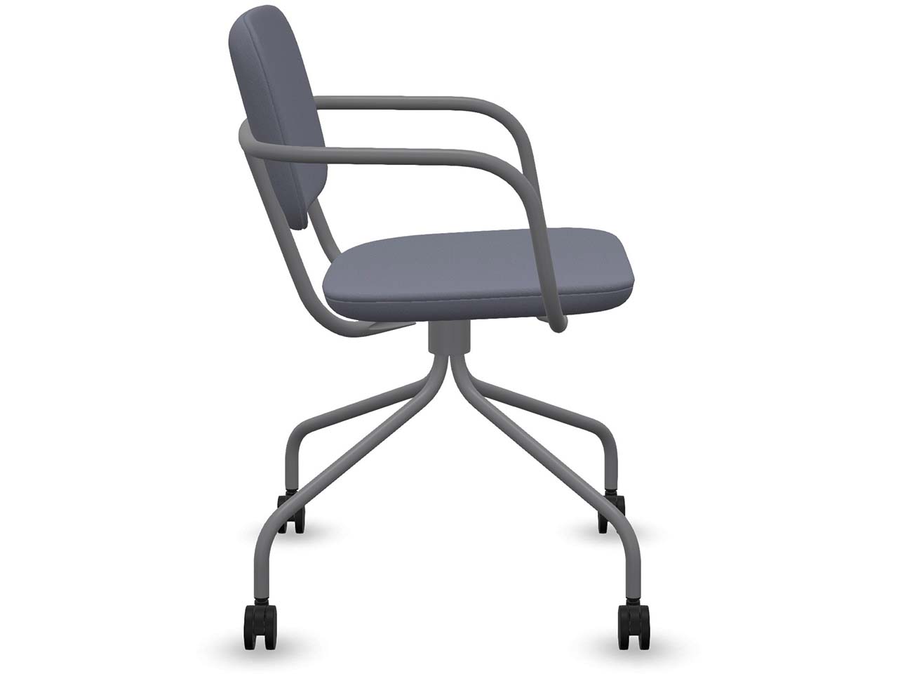 Dieser Besucherstuhl mit Rollen für Wartebereiche, Konferenz- oder Seminarräume fügt sich in jede Umgebung stilsicher ein. Er ist minimalistisch designt und bietet mit Polsterung an Sitz und Rückenlehne sowie Armlehnen einen hohen Sitzkomfort. Die Kunststoffteile des Drehstuhls bestehen aus Recyclingmaterial. Das macht ihn zu einer ökologisch sinnvollen, langlebigen Wahl.