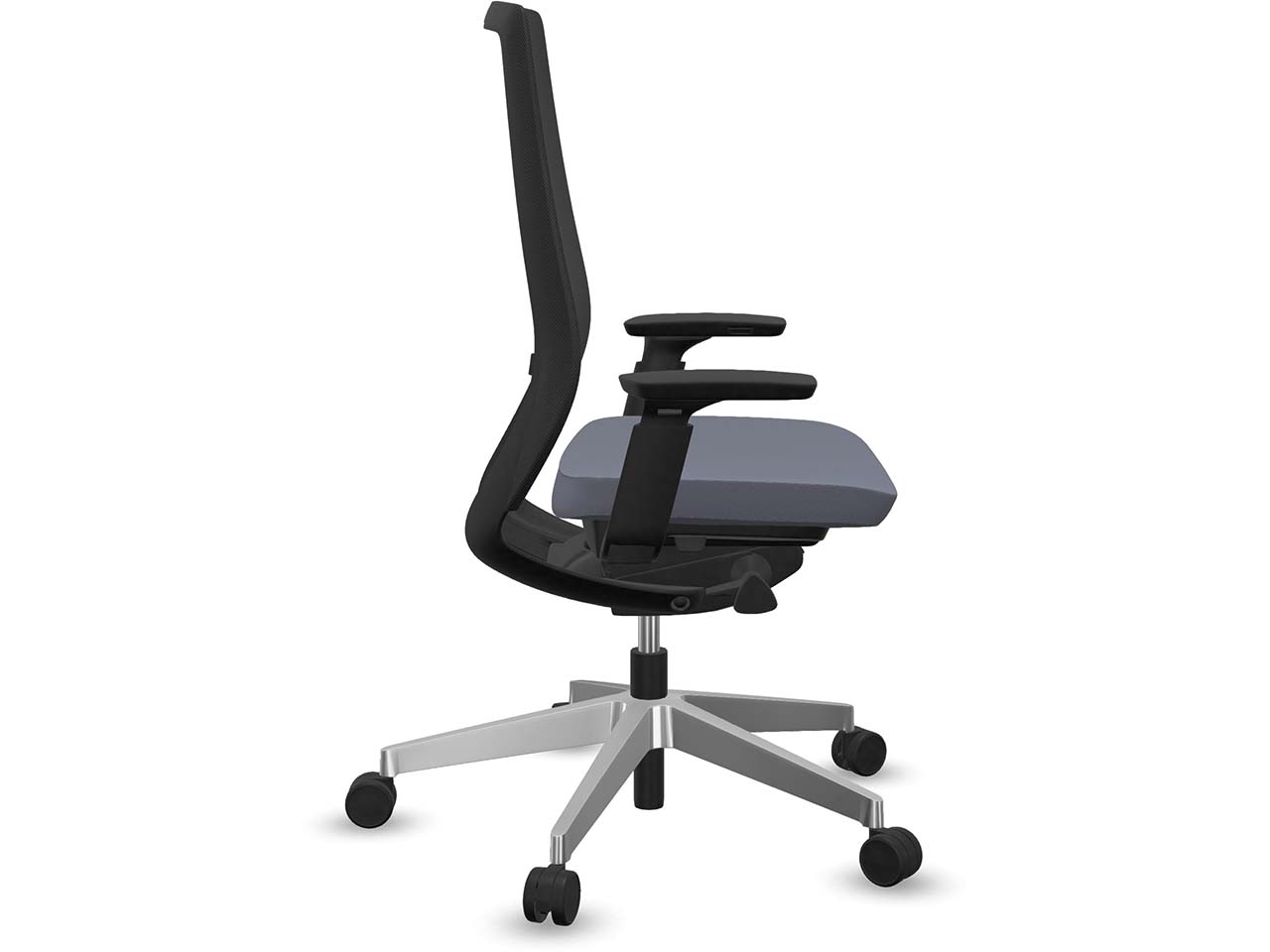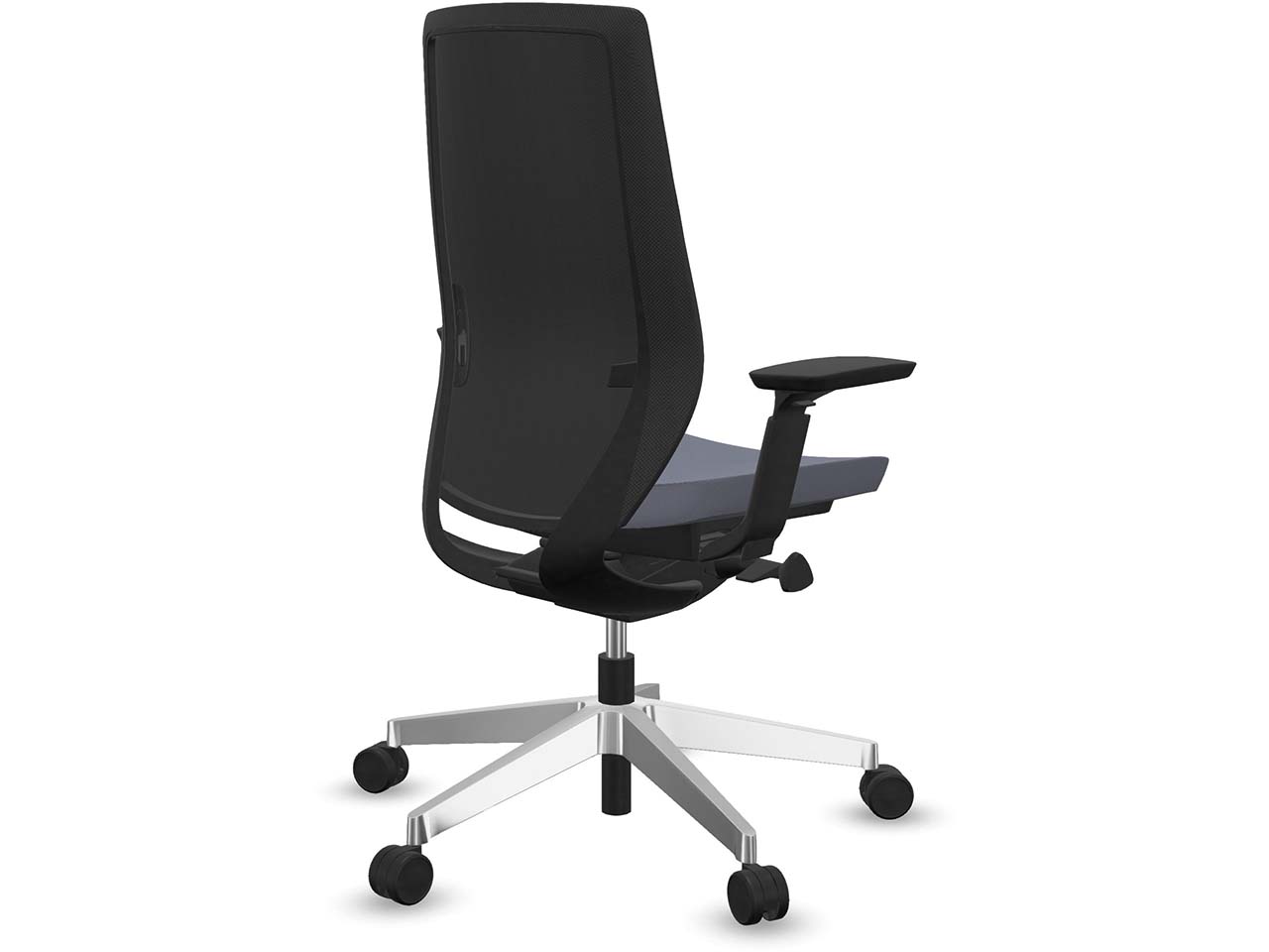 Dieser ergonomische Bürodrehstuhl ermöglicht aktives, bewegliches Sitzen direkt am Schreibtisch. Er ist mit einem innovativen, patentierten Mechanismus ausgestattet, der er eine seitliche, voneinander unabhängige Bewegung von Sitzfläche und Rückenlehne erlaubt. So sitzt man dynamischer. Die hohe Rückenlehne aus atmungsaktivem Netzmaterial sorgt für optimale Luftzirkulation. Ergänzt wird der Stuhl durch eine Synchronmechanik, individuell anpassbare Sitzneigung sowie 4D-Armlehnen, die in Höhe, Breite, Tiefe verstellbar und drehbar sind.