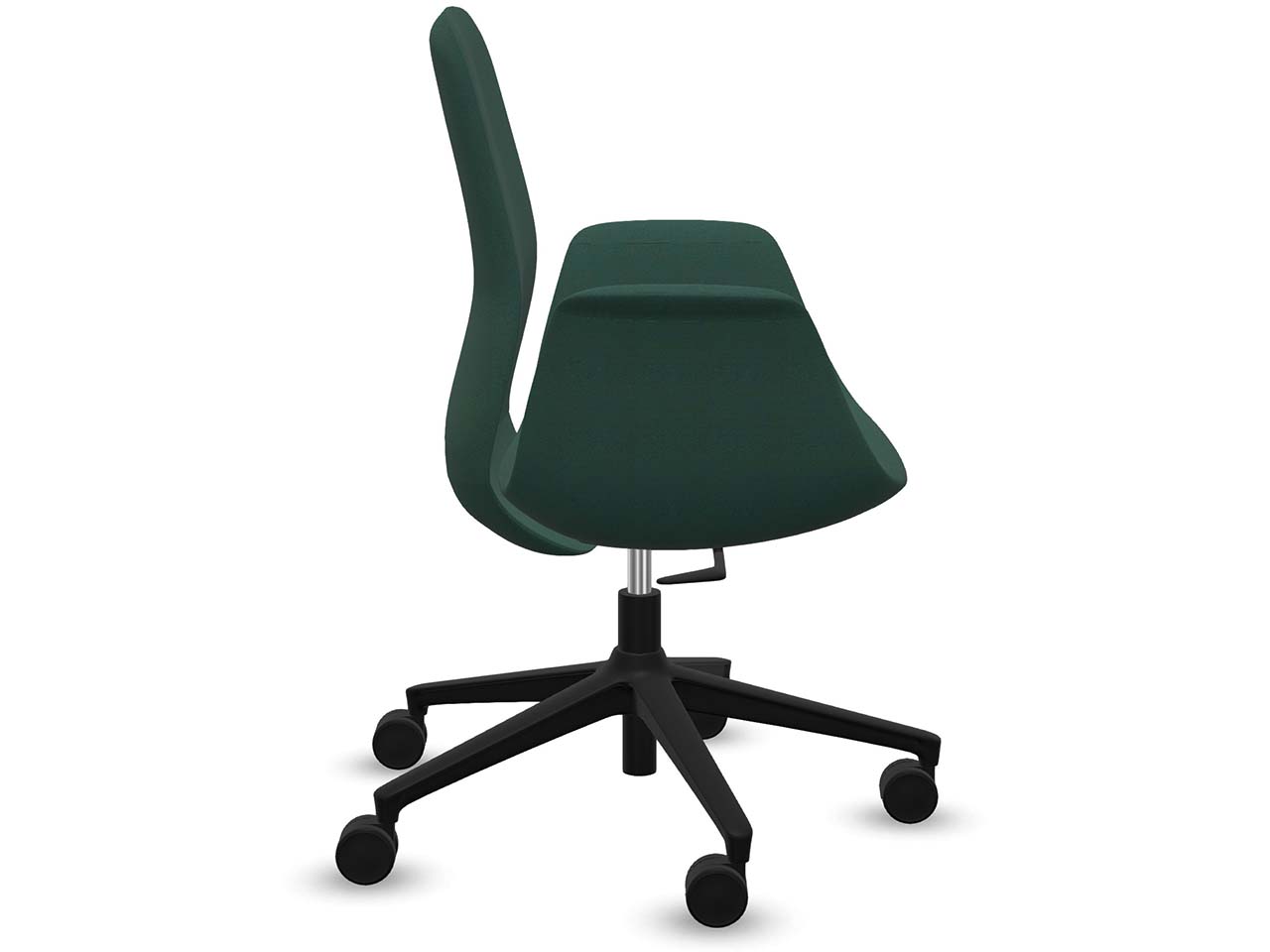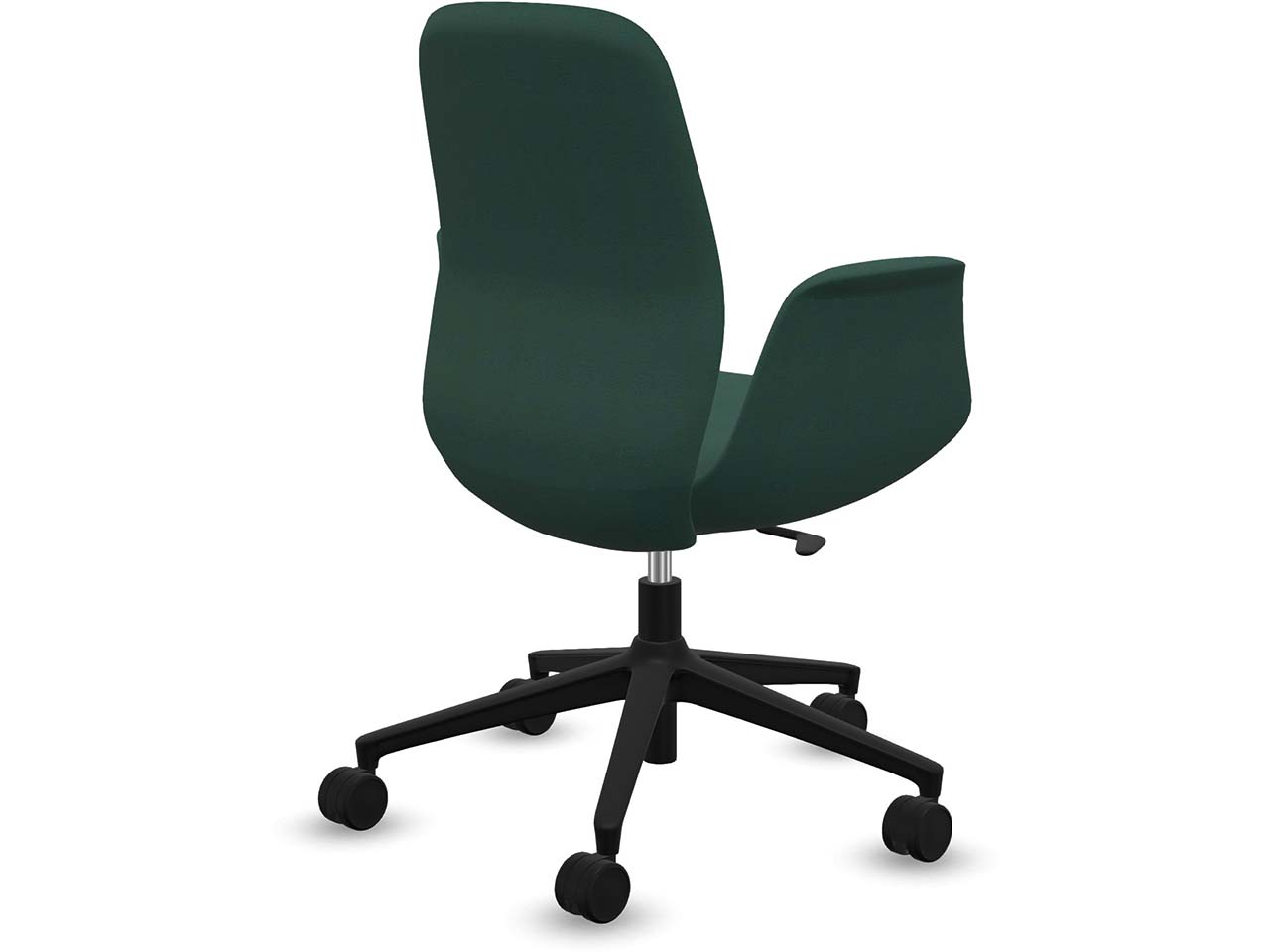 Dieser Designer-Bürodrehstuhl sorgt für viel Komfort bei der Arbeit am Schreibtisch. Der Drehsessel mit niedriger Rückenlehne und Armlehnen ist mit einer Synchronmechanik mit automatischer Federkrafteinstellung ausgestattet. Dadurch entsteht ein hoher Sitzkomfort. Der in der Höhe verstellbare Drehsessel in moderner, eleganter Optik verfügt über ein stabiles, langlebiges Fußkreuz. Der Bürodrehstuhl ist perfekt für alle, die Komfort und Design kombinieren wollen.