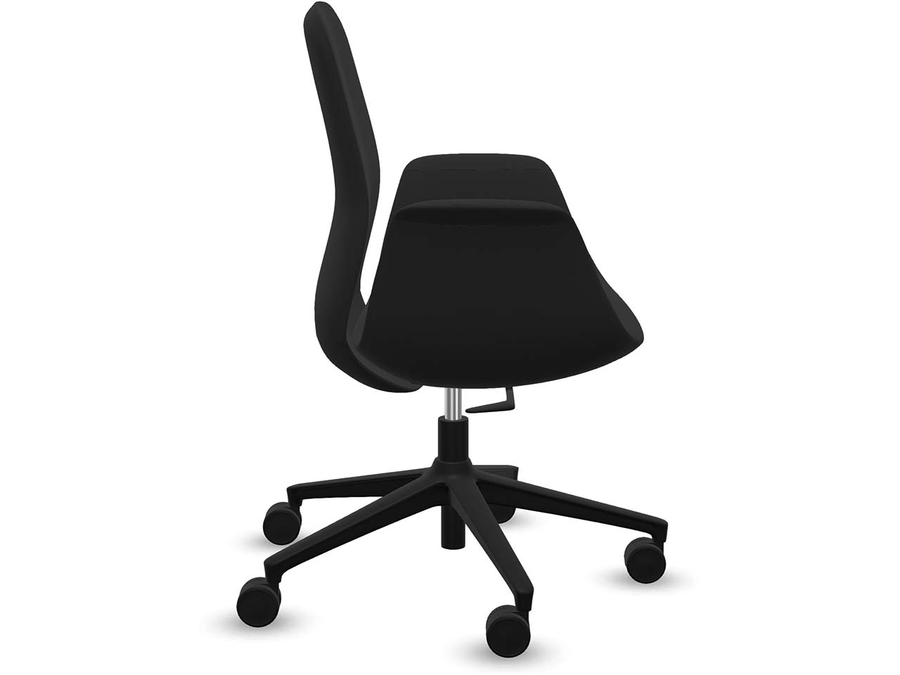 Dieser Designer-Bürodrehstuhl sorgt für viel Komfort bei der Arbeit am Schreibtisch. Der Drehsessel mit niedriger Rückenlehne und Armlehnen ist mit einer Synchronmechanik mit automatischer Federkrafteinstellung ausgestattet. Dadurch entsteht ein hoher Sitzkomfort. Der in der Höhe verstellbare Drehsessel in moderner, eleganter Optik verfügt über ein stabiles, langlebiges Fußkreuz. Der Bürodrehstuhl ist perfekt für alle, die Komfort und Design kombinieren wollen.