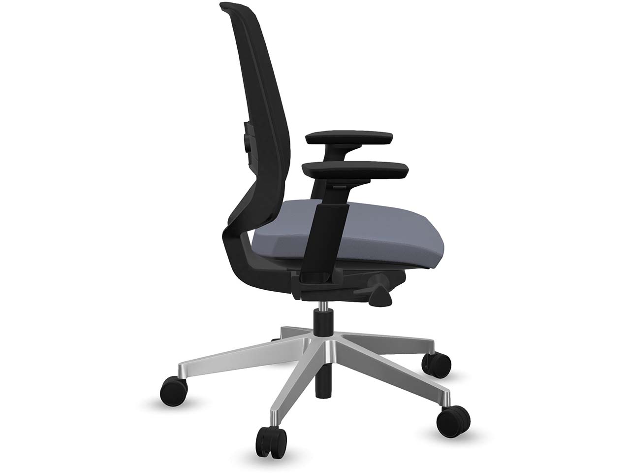 Ob im Homeoffice oder im klassischen Büro: Dieser flexible Drehstuhl ist mit einer ergonomischen Ausstattung und der kompakten Größe immer perfekt. Der gepolsterte Sitz lässt sich in Tiefe und Neigung individuell anpassen, was eine bequeme Sitzhaltung unterstützt. Die moderne Synchronmechanik fördert aktives Sitzen und bietet fünf feste Einstellmöglichkeiten. Für zusätzlichen Komfort sorgen die luftdurchlässige Rückenlehne aus Netzmaterial sowie die Armlehnen.